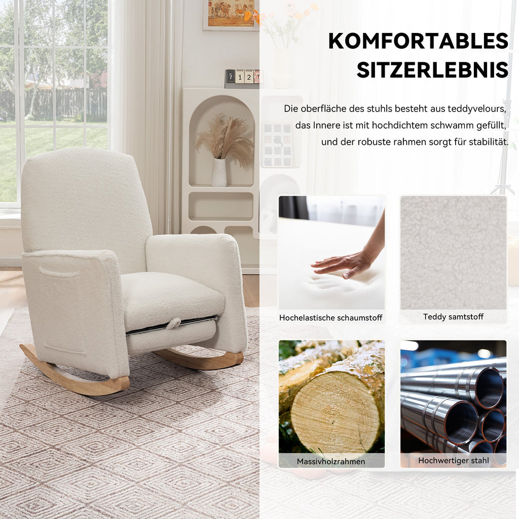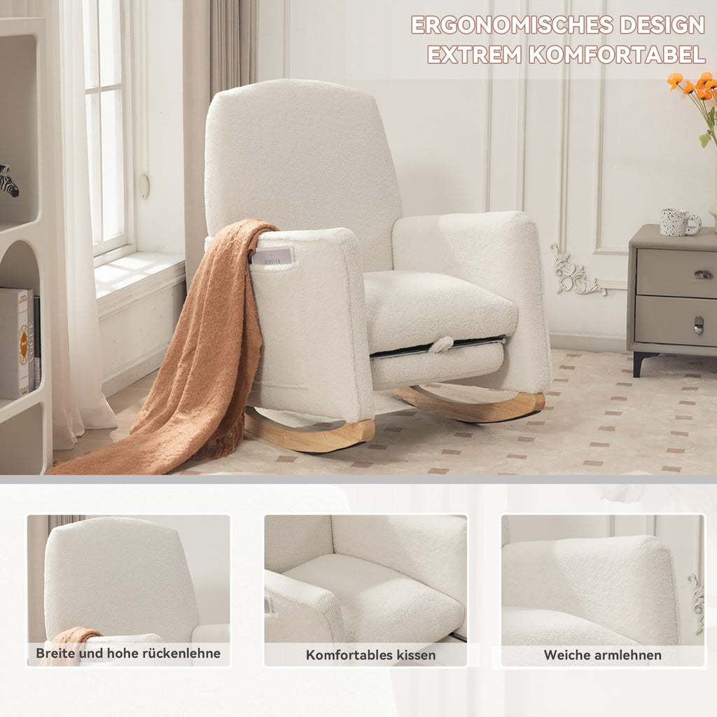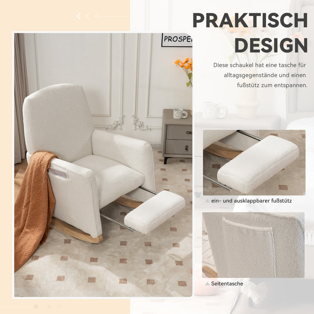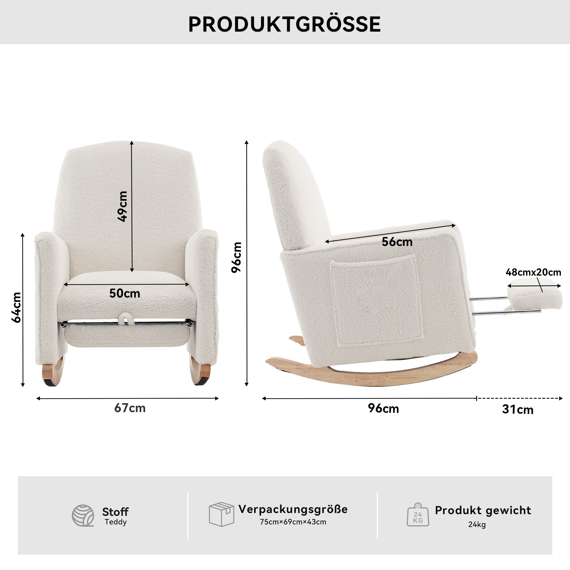 044 Rocking Chair with Stool, Recliner, High Back, White Teddy Fabric