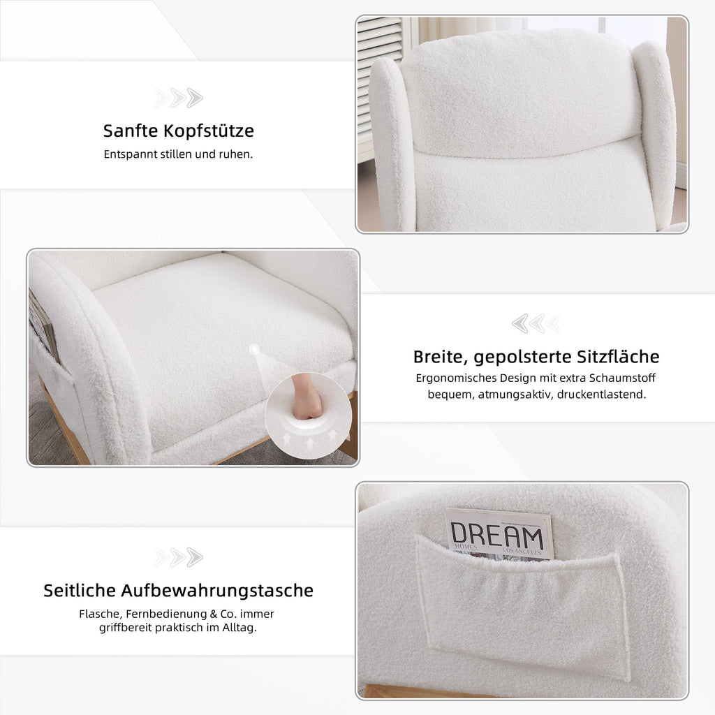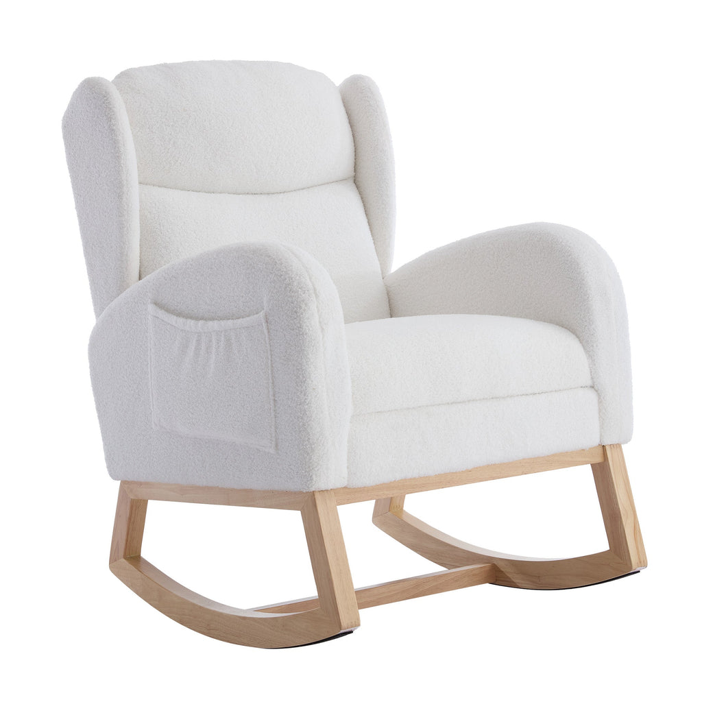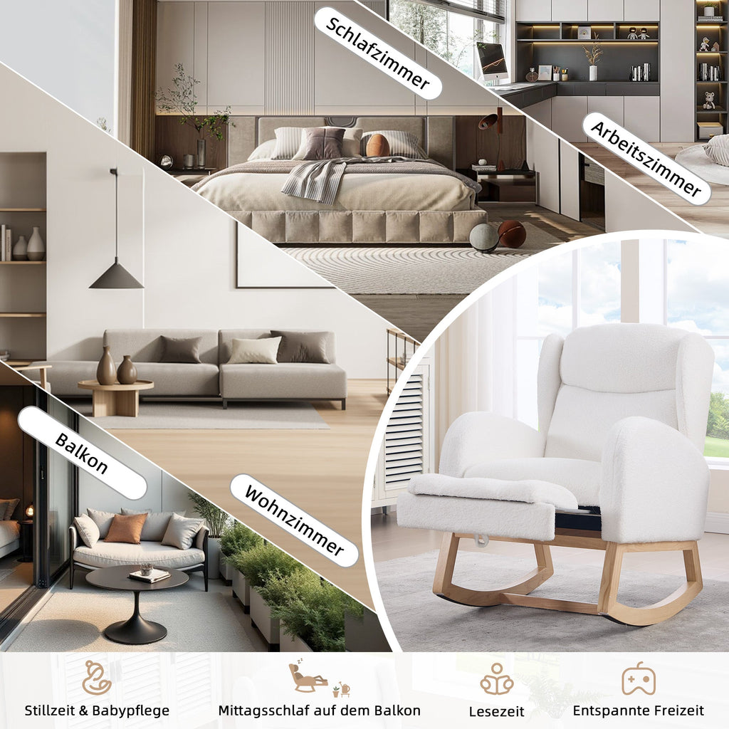 049B Rocking Chair, Nursing Lounge Chair with Adjustable Footrest, Teddy Fabric White