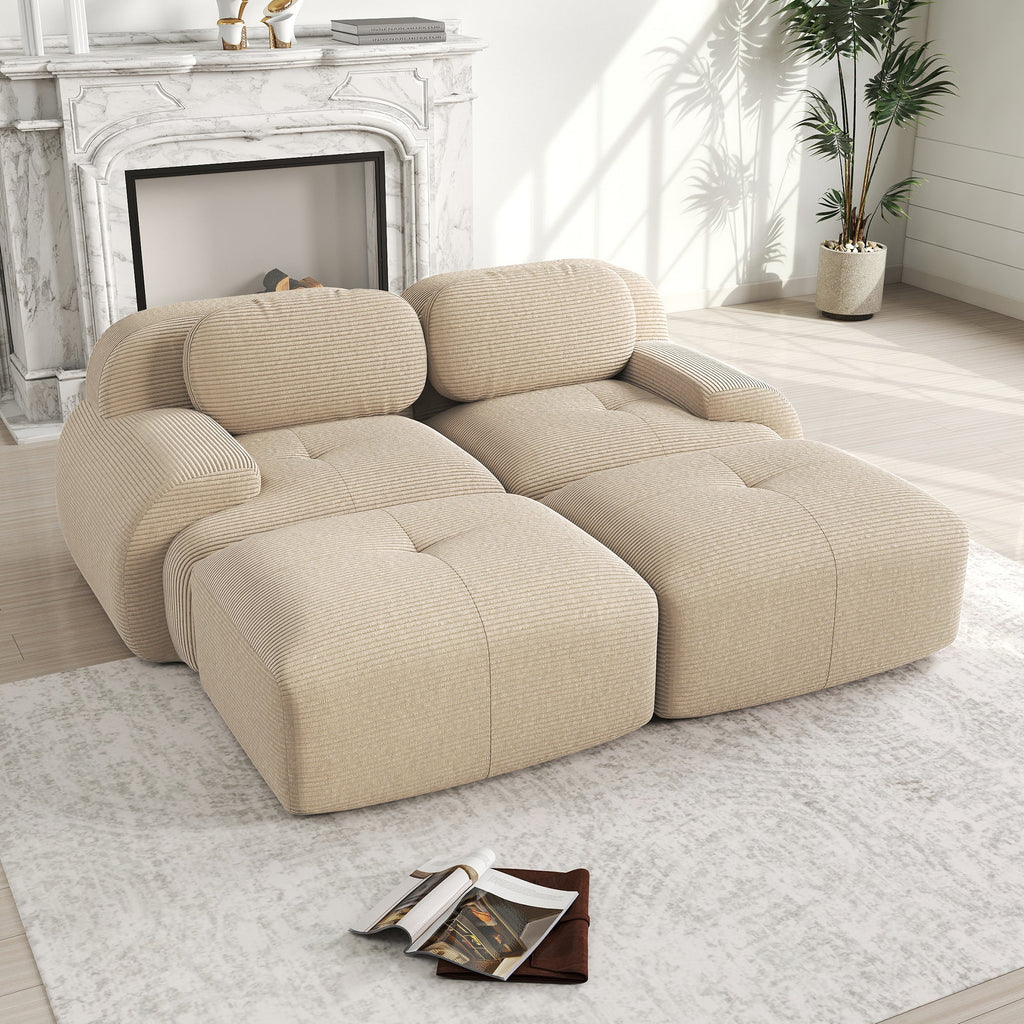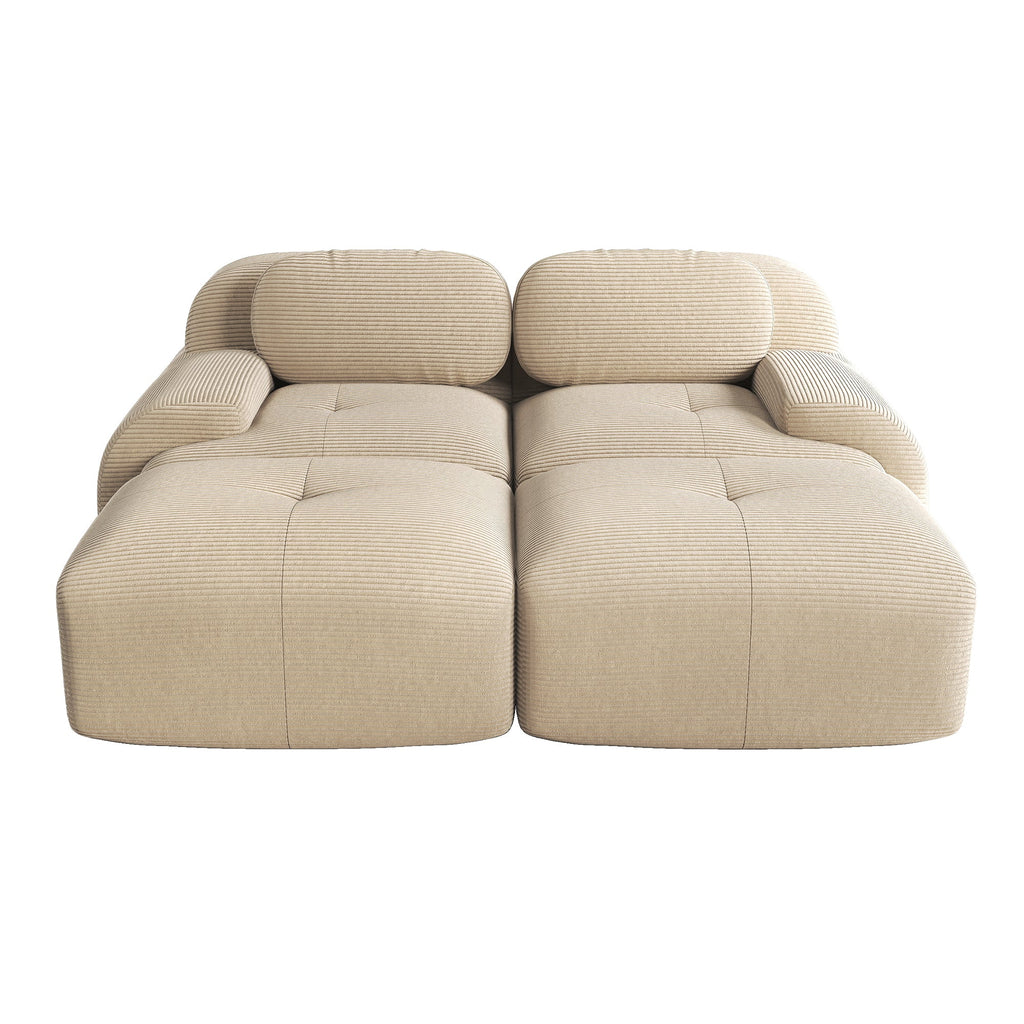 2-seater sofa, modular with chaise longue, non-slip, corduroy beige