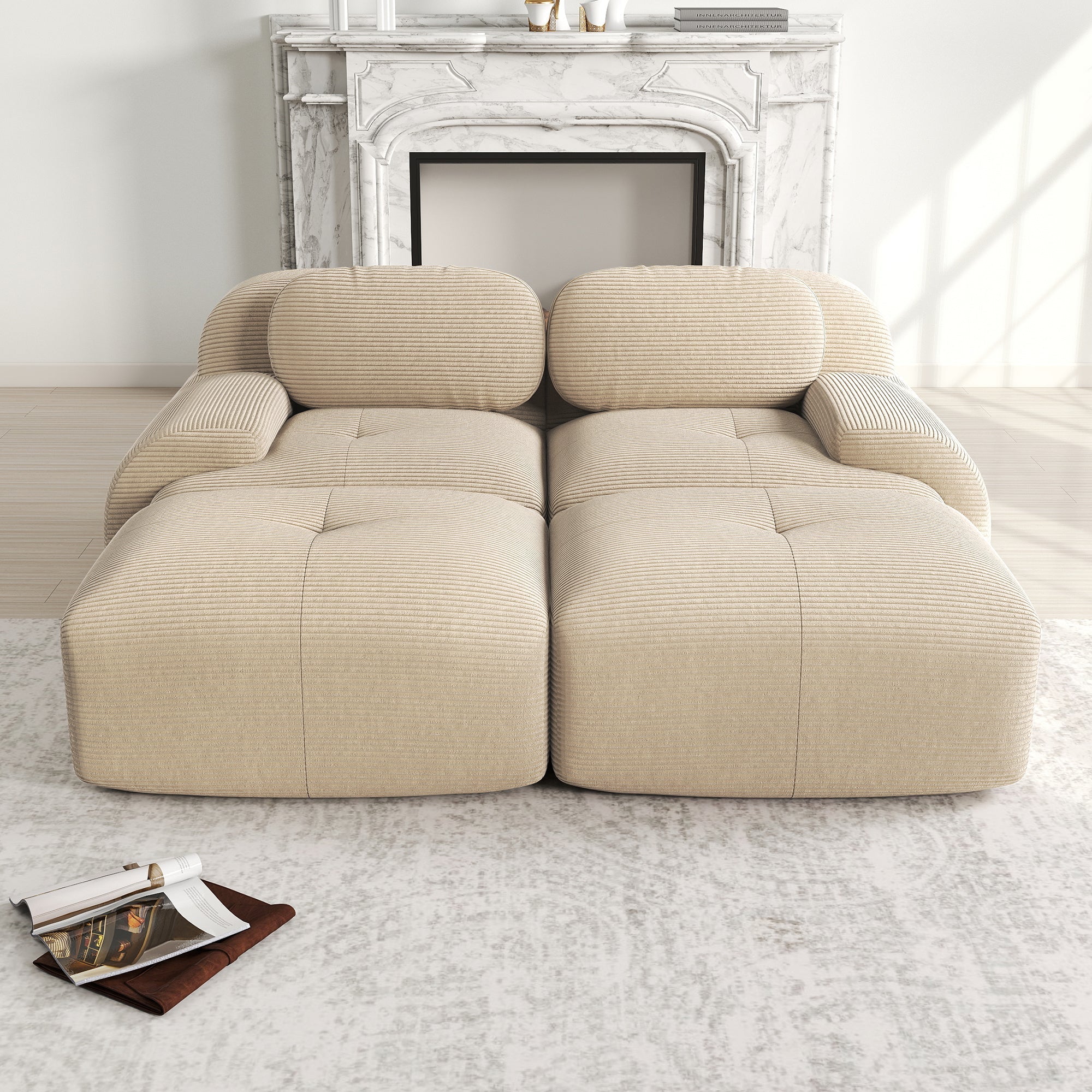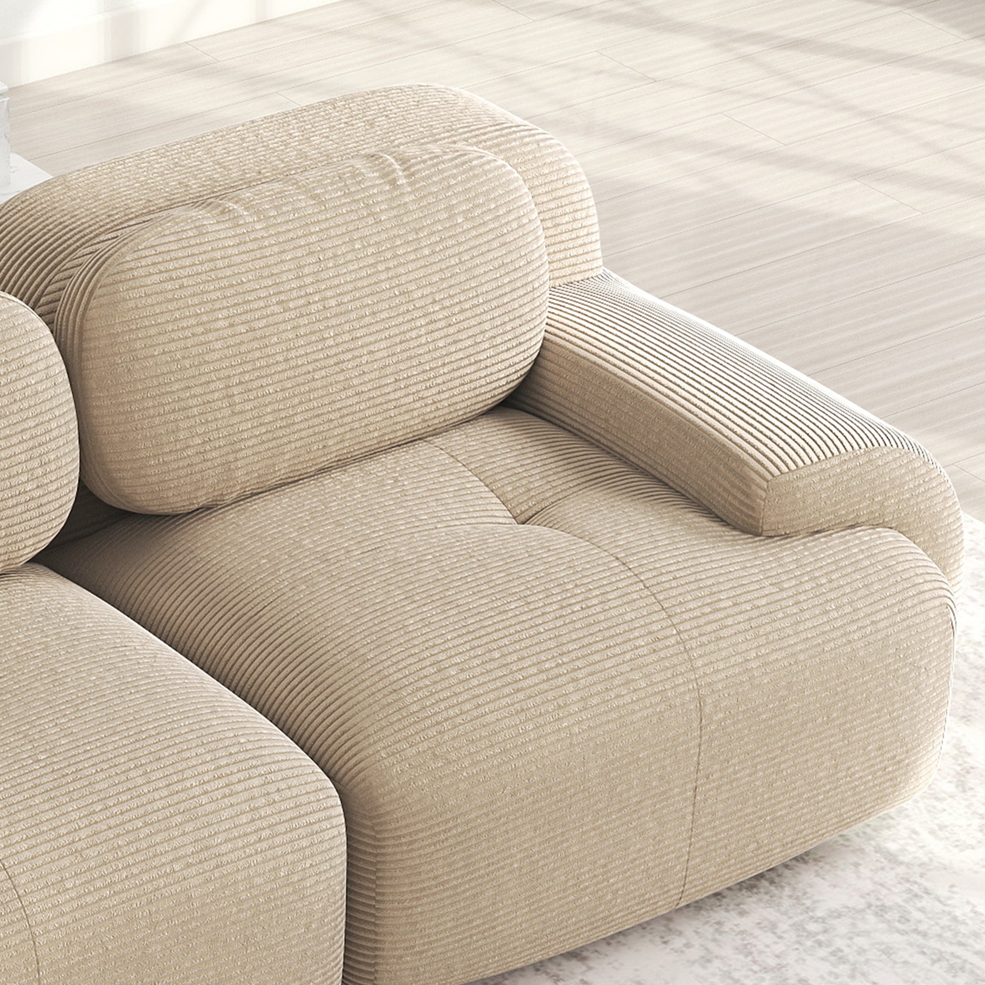 Ergonomic Design: This sofa features an ergonomic curved design with a multi-adjustable backrest. The seat uses 32D high-resilience foam for quick recovery and durability, combined with skin-friendly, breathable corduroy for cloud-soft comfort. The widened seat and curved footrest provide additional leg support to reduce sitting fatigue and provide deep relaxation with every lean.