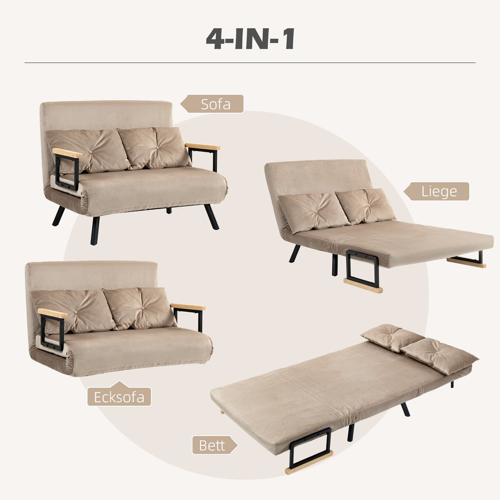 2-Seater Sofa Sleeper, Adjustable Backrest, Velvet Look Light Brown