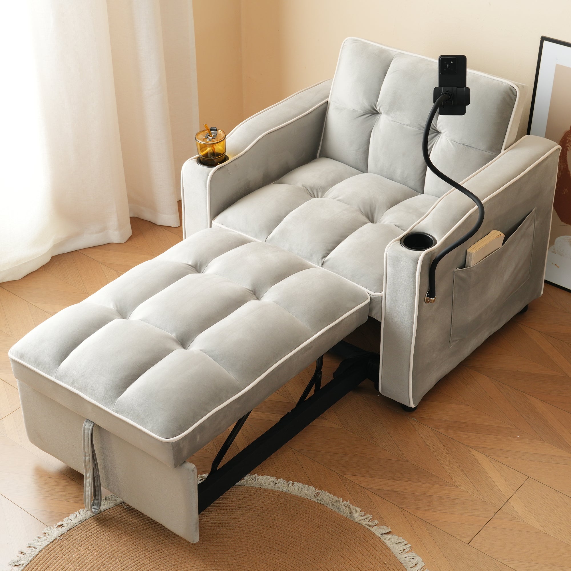3-in-1 Extendable Single Sleeper Sofa with Cup/Phone Holders, Perfect for Small Spaces