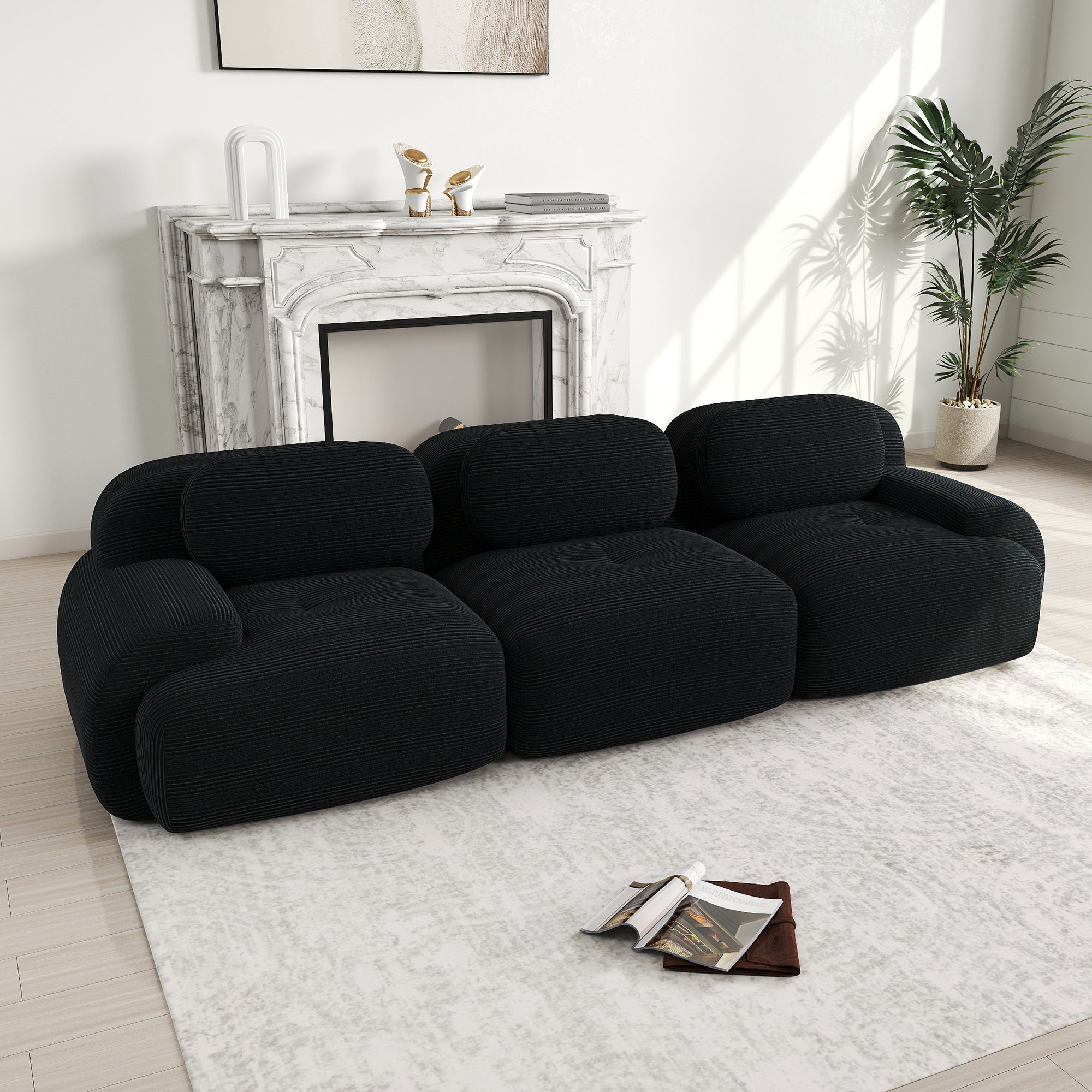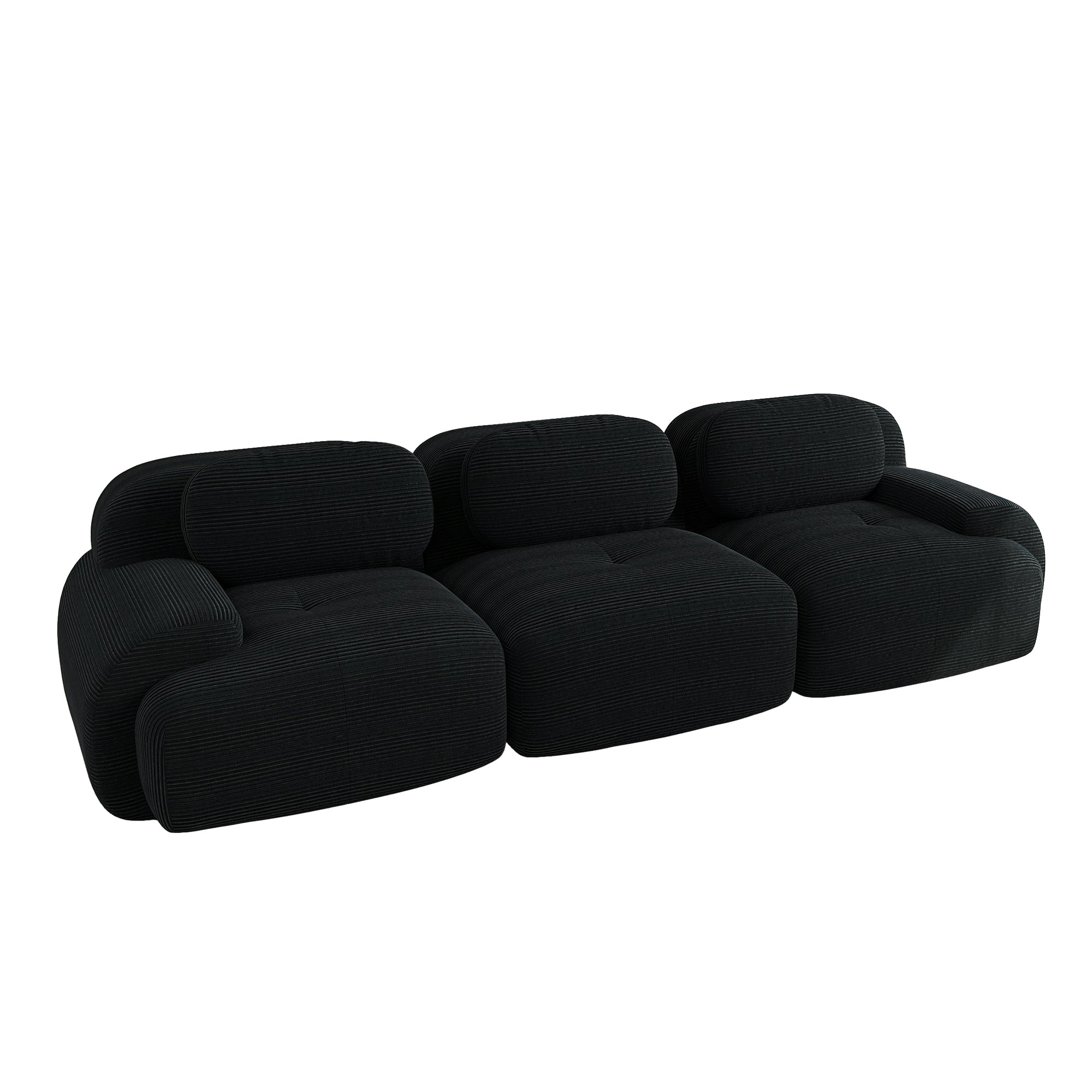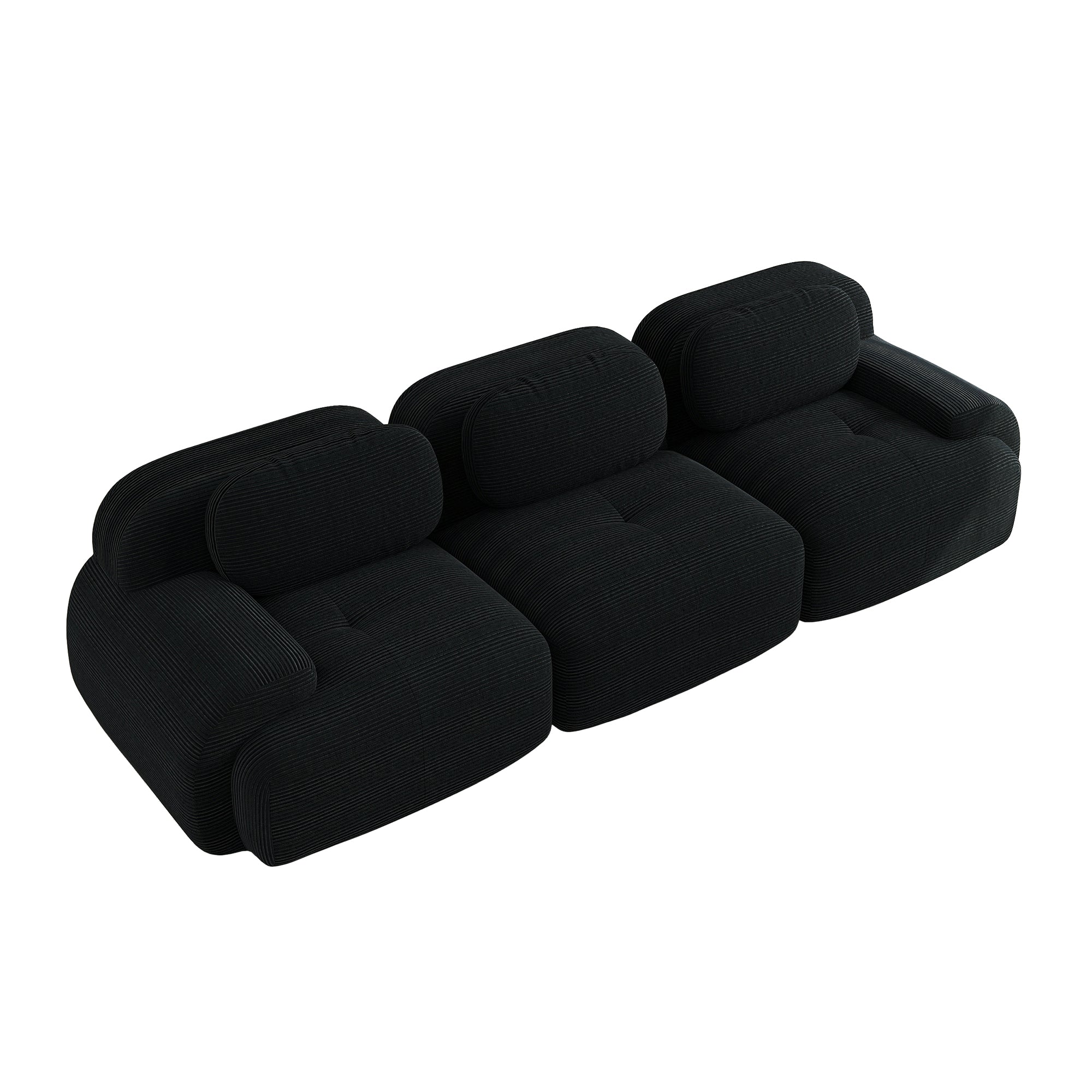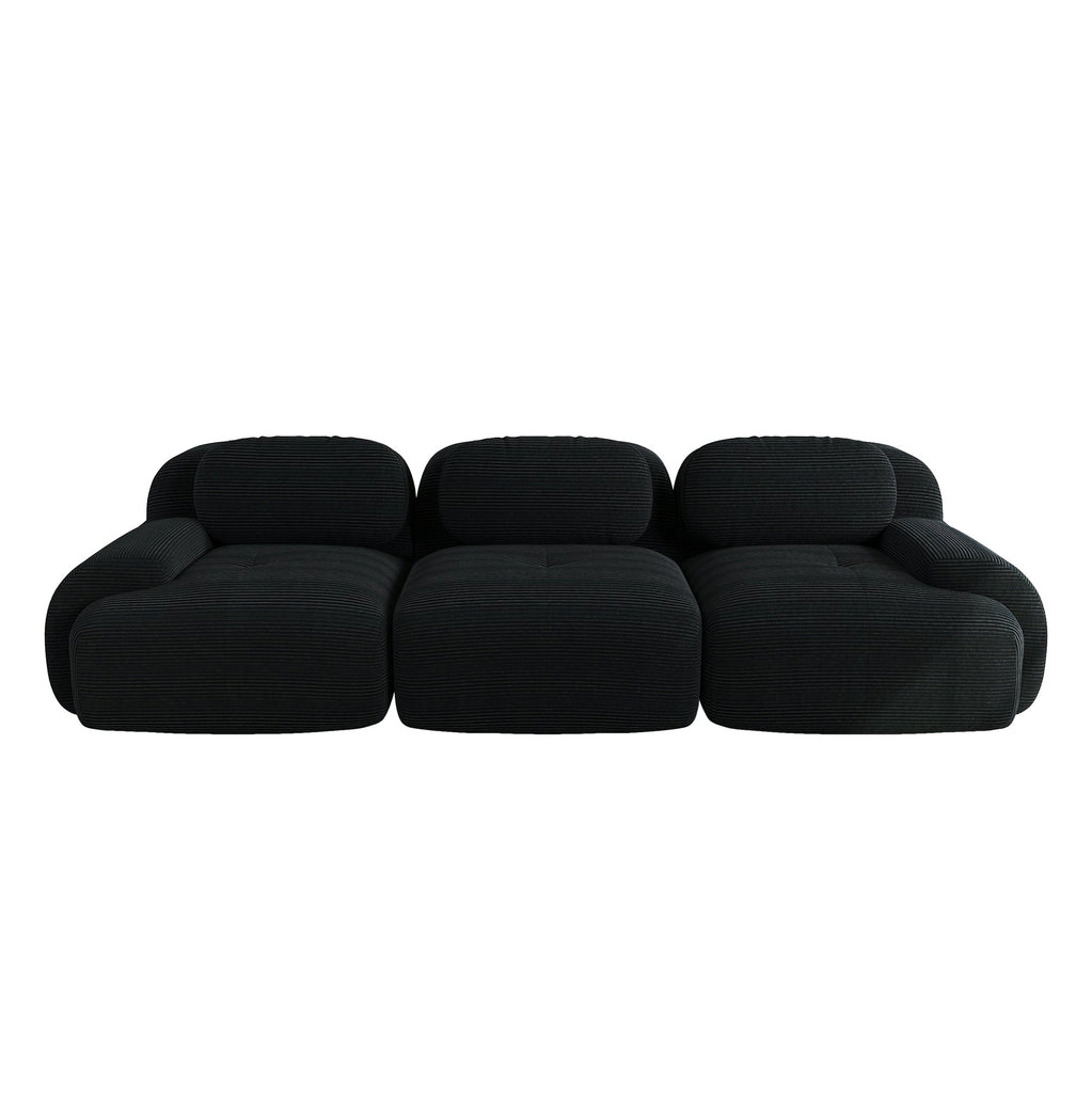 3-Seater Sofa, Modular Non-Slip with Ergonomic Armrests, Black Corduroy