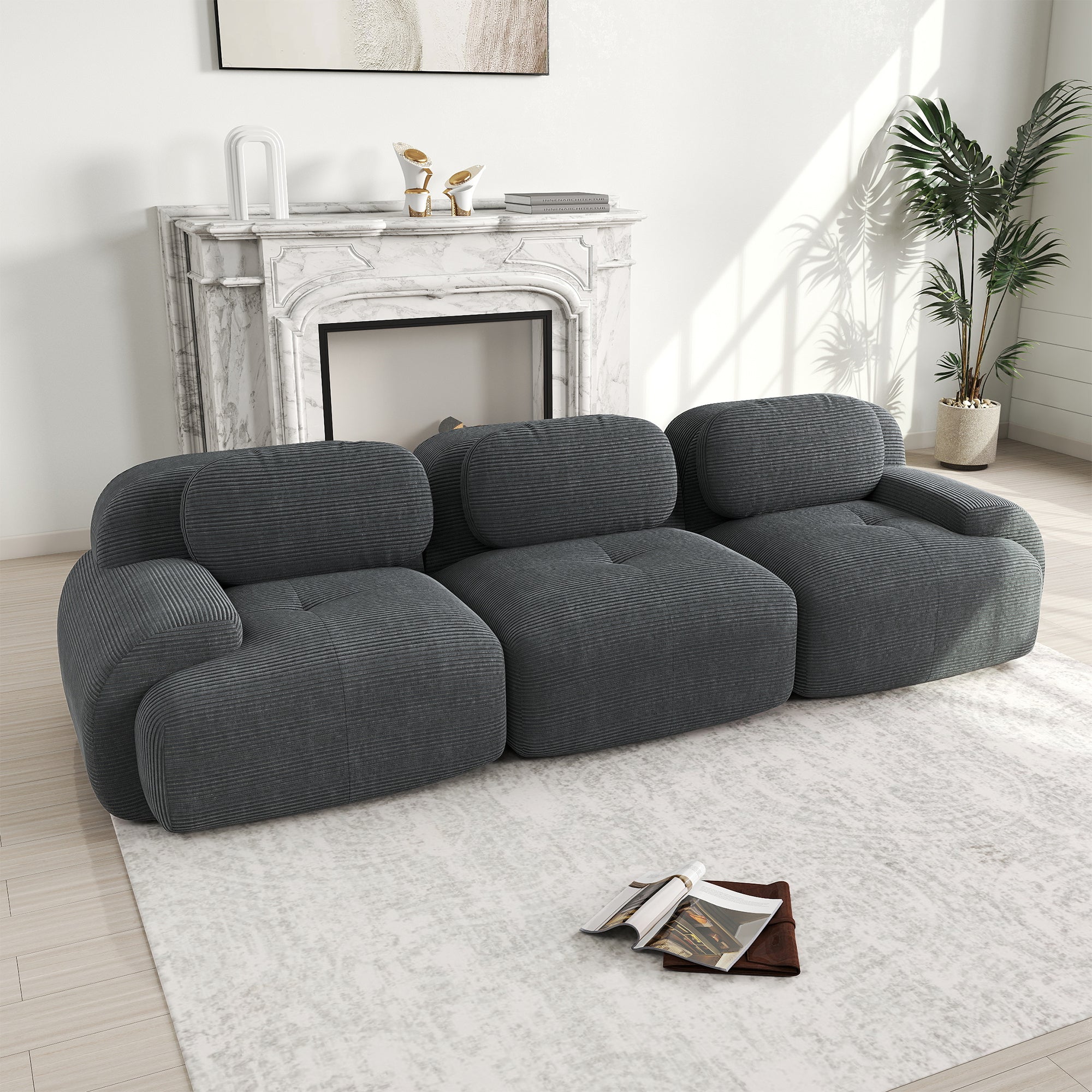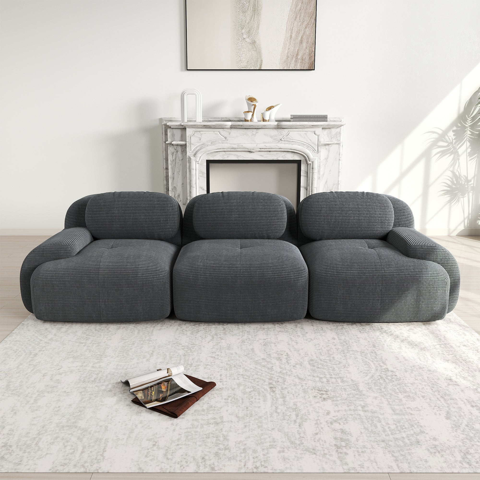 3-Seater Sofa, Modular Non-Slip with Ergonomic Armrests, Corduroy Grey