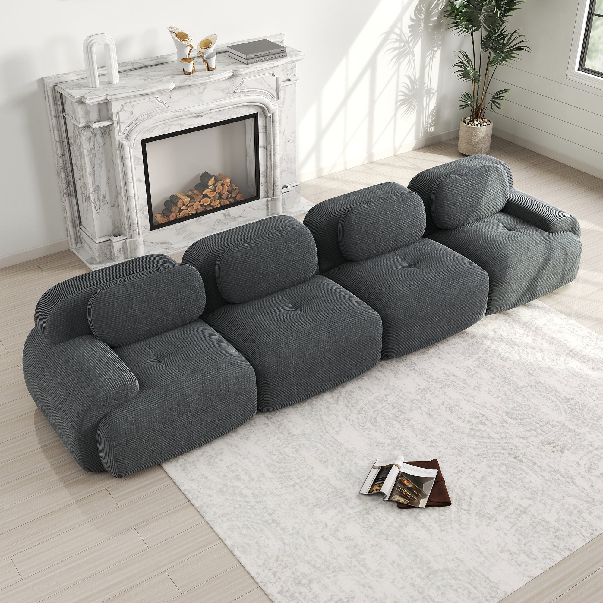 Our modular sofa saves you the hassle of complicated furniture assembly—it's ready to use right out of the box. Simply unpack all the components and gently tap each module to activate the elasticity and restore its beautiful shape.