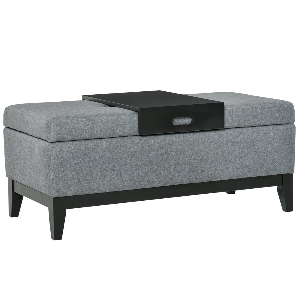 Bench, Storage Upholstered Stool, Removable Tray, Beige Polyester Foam