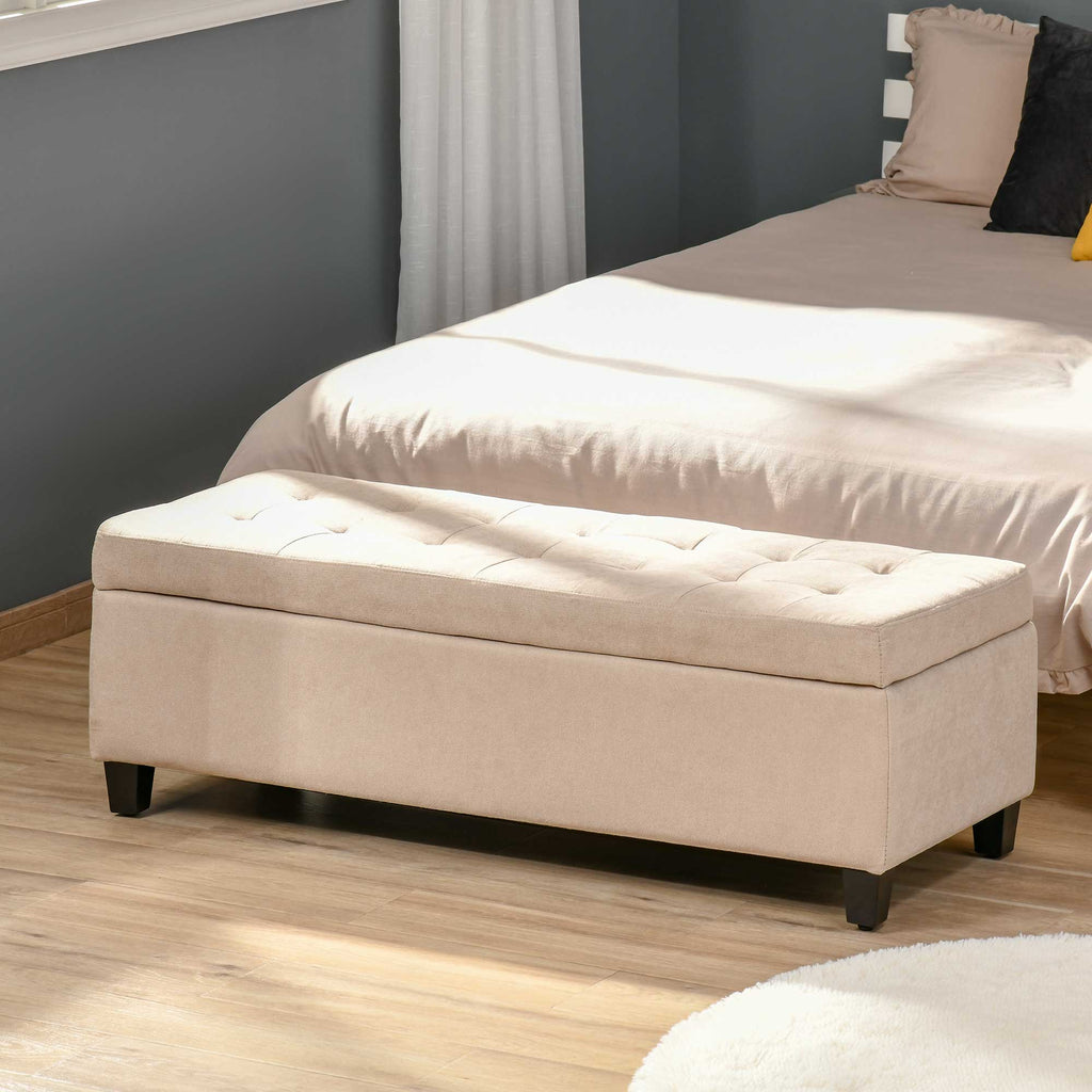 Bench, Upholstered Storage Bed Chest, Linen Beige