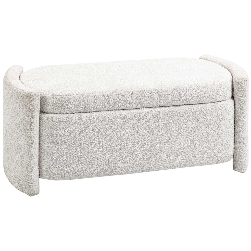 Dimensions of the upholstered bench: 105L x 44W x 45.5H cm. Interior: 87W x 34D x 28H cm. Maximum load: 150 kg. Assembly required.