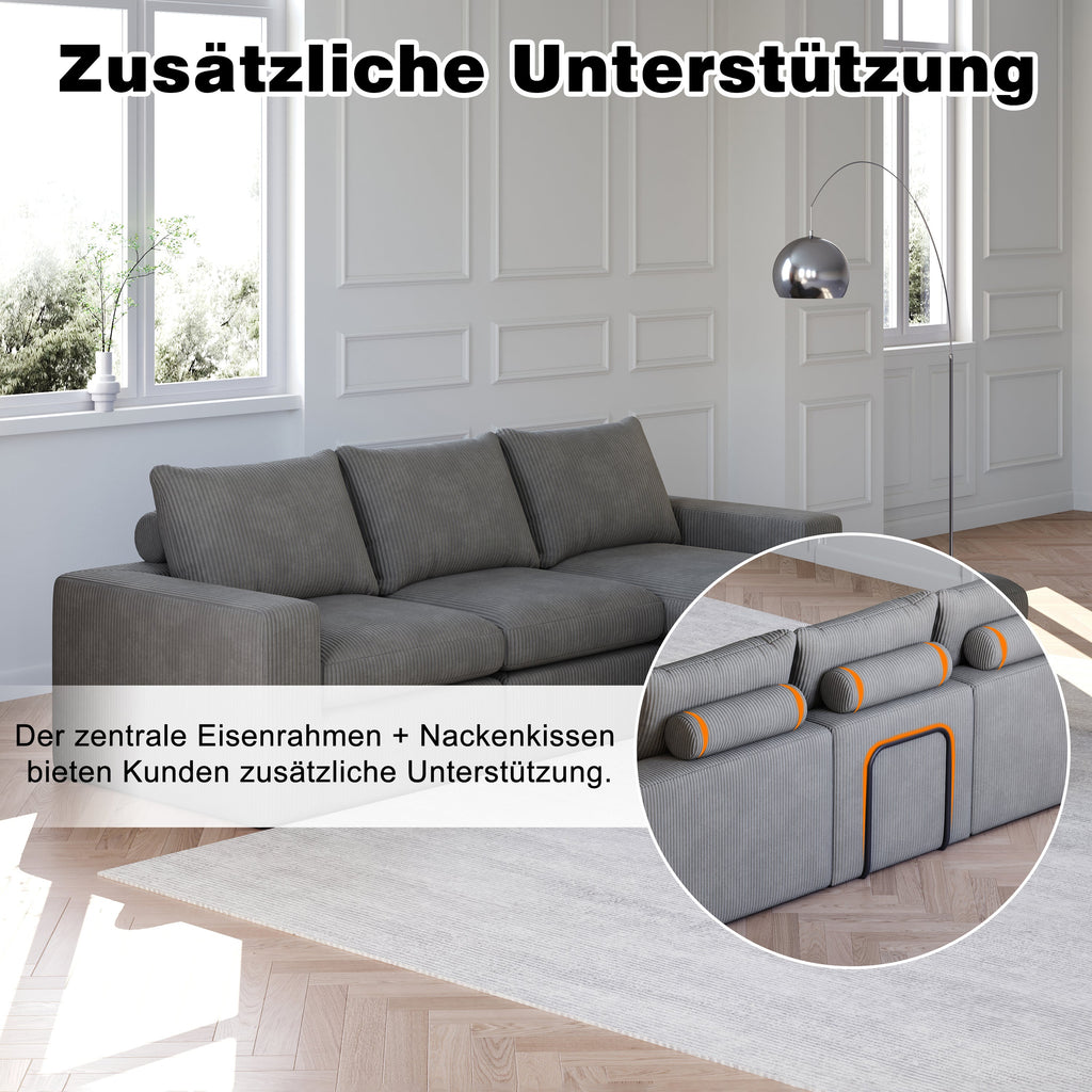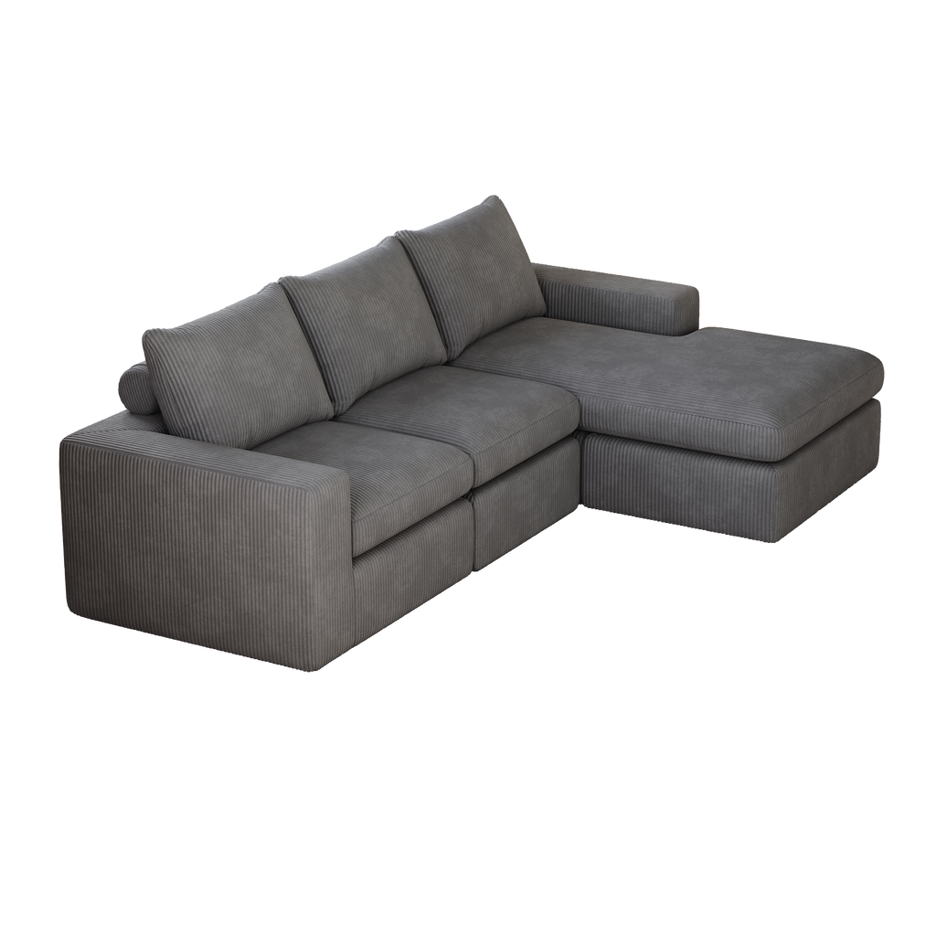 Boneless Couch with Chaise, L-shaped Modern Upholstered Corduroy