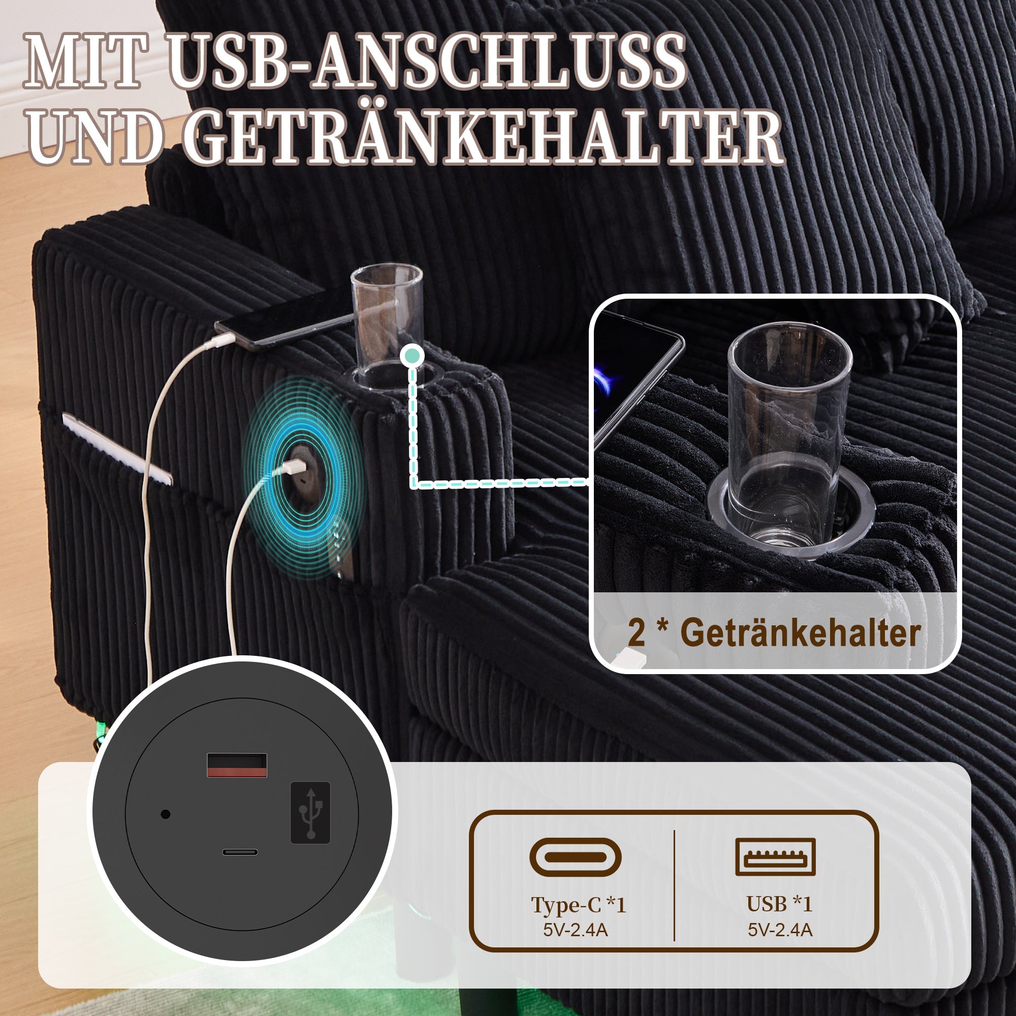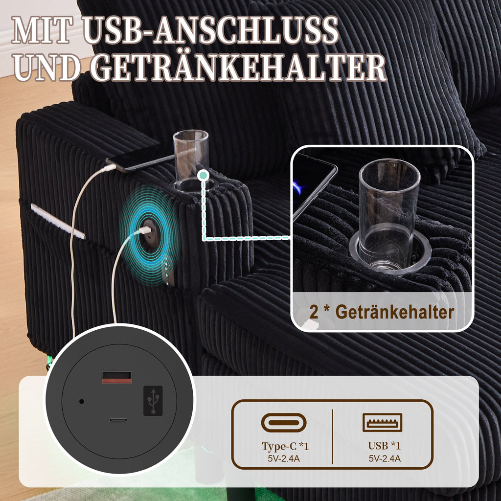 This oversized recliner allows you to charge your phone or tablet at any time. It is equipped with a cup holder for water, coffee, and other beverage bottles. Enjoy relaxing hours in this recliner. This indoor recliner offers you unparalleled comfort, whether you're immersing yourself in a good book before bed or enjoying a relaxing moment during your daily routine.