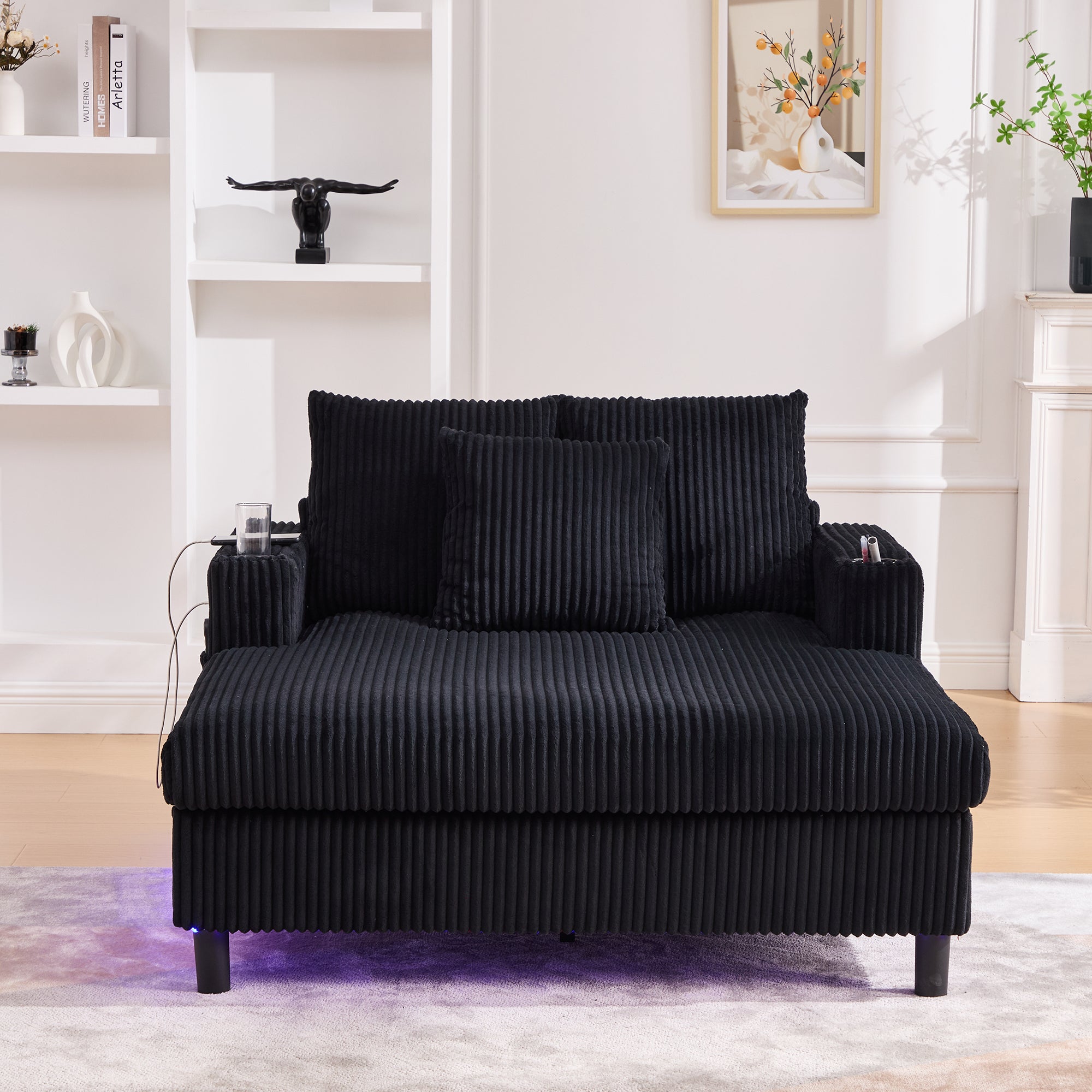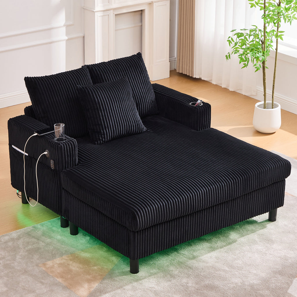 Chaise Longue Recliner, Soft with Cup Holders, USB Ports & LED Lighting