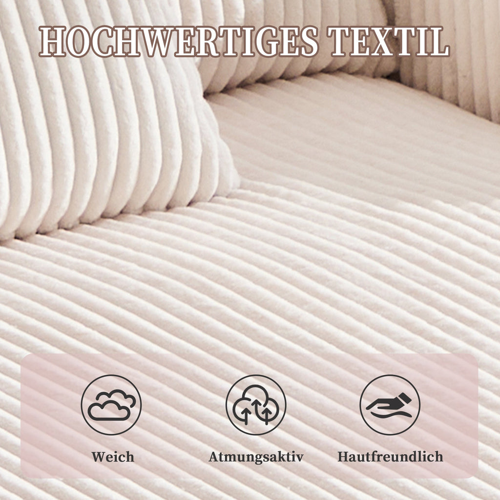 This sturdy indoor recliner is carefully crafted from durable corduroy fabric and a solid wood frame, supporting up to 350 kg. Equipped with three soft cushions and high-resilient foam padding with an embedded spring system, it ensures long-lasting comfort and is an excellent choice for your furniture.