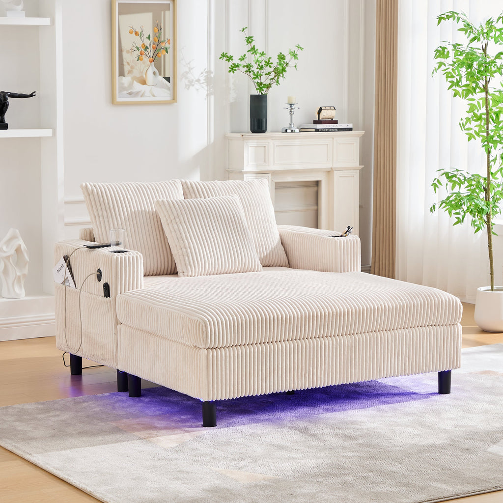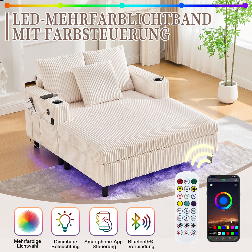 Chaise Longue Recliner with Cupholders, USB, LED Lighting, Soft