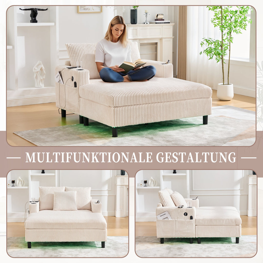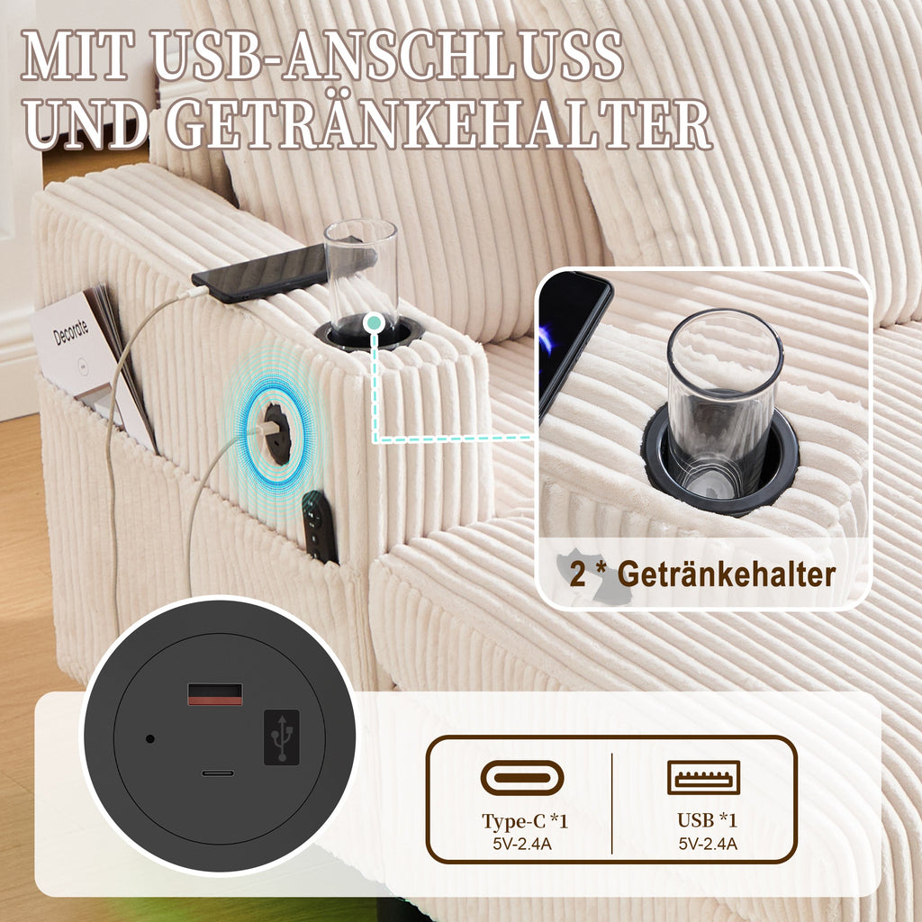 This oversized recliner allows you to charge your phone or tablet at any time. It is equipped with a cup holder for water, coffee, and other beverage bottles. Enjoy relaxing hours in this recliner. This indoor recliner offers you unparalleled comfort, whether you're immersing yourself in a good book before bed or enjoying a relaxing moment during your daily routine.
