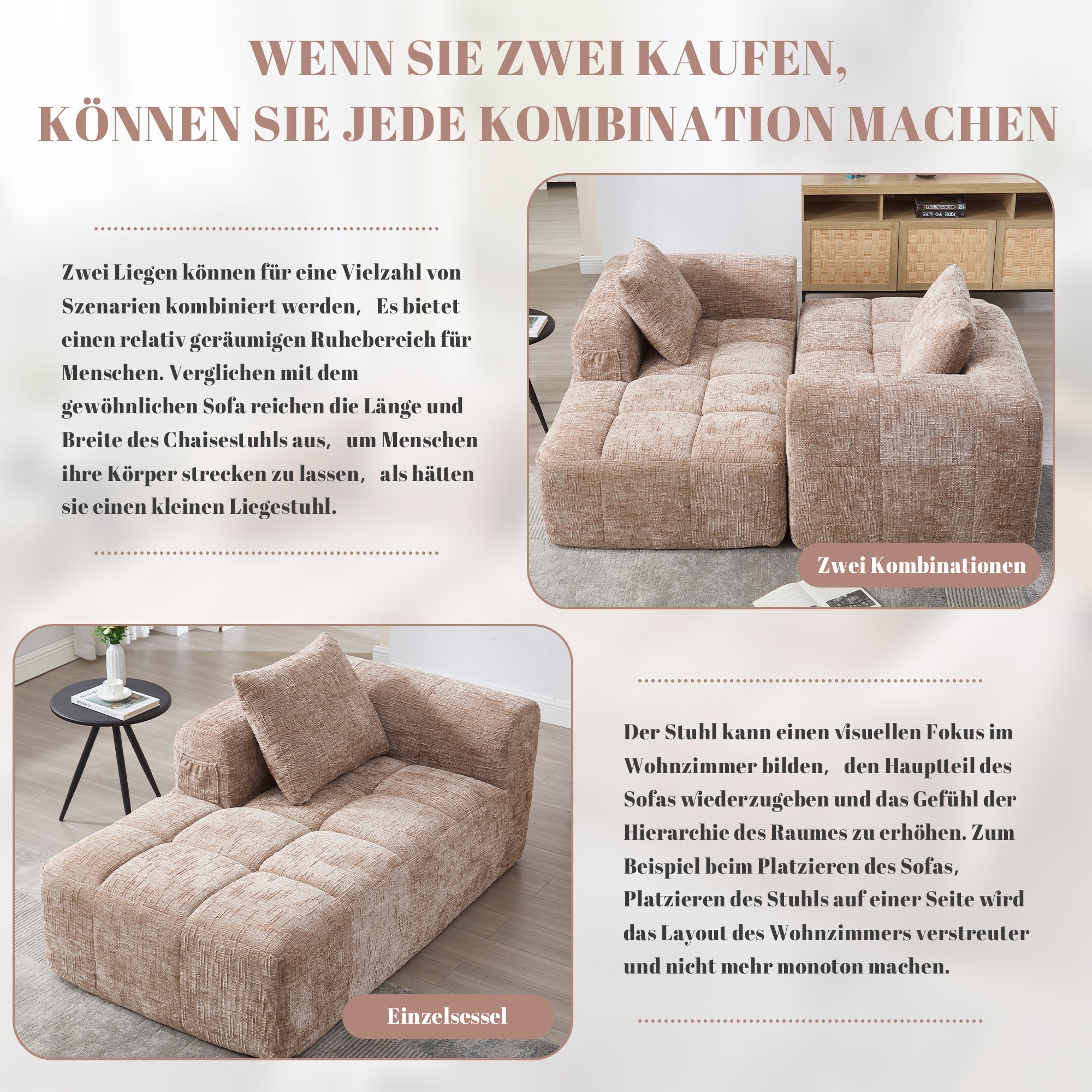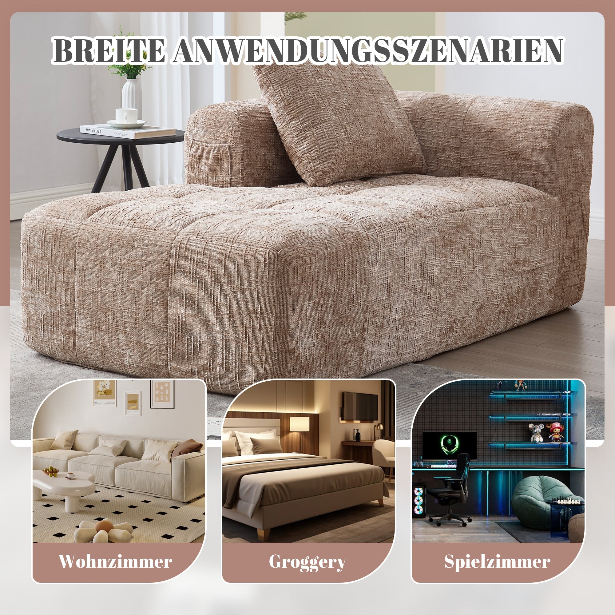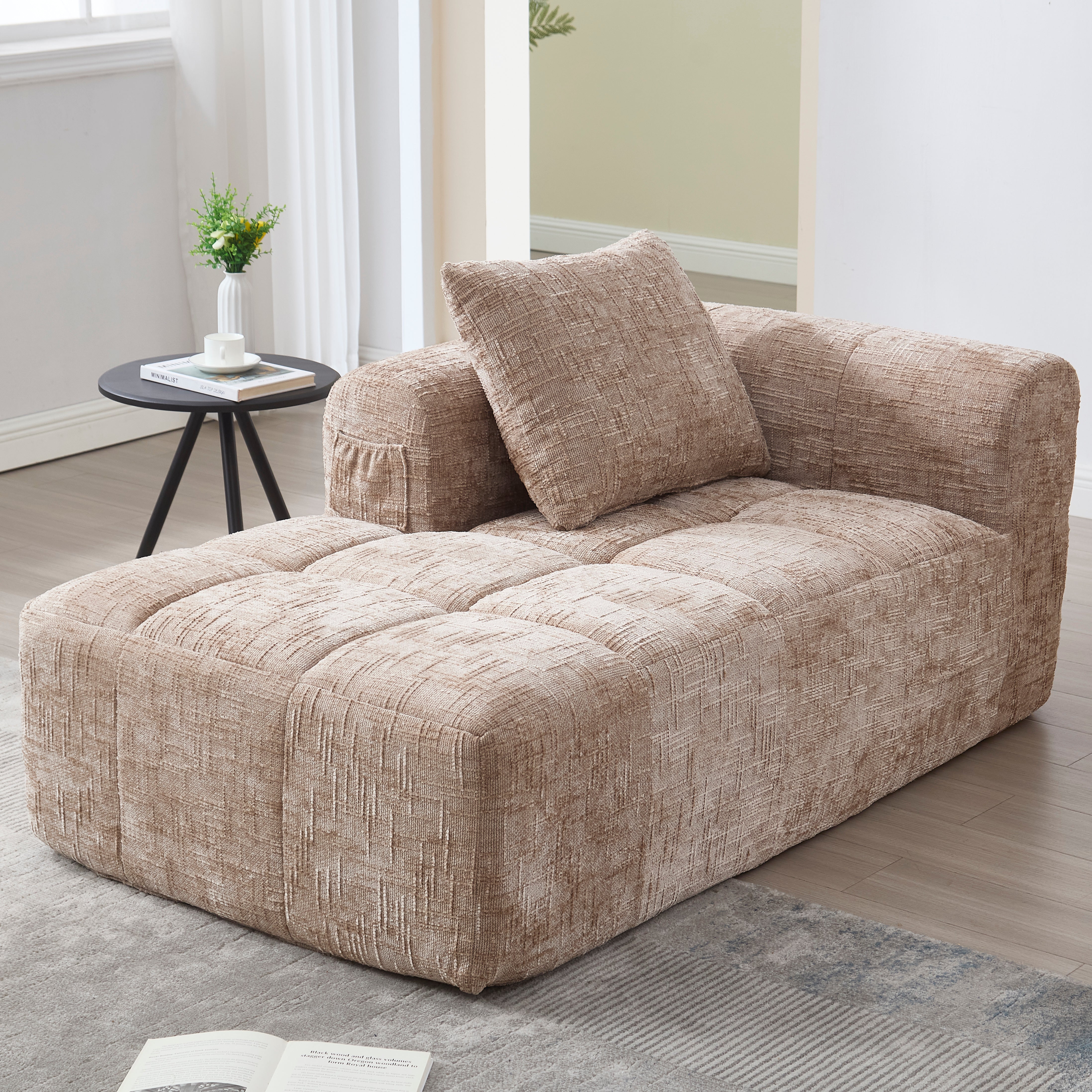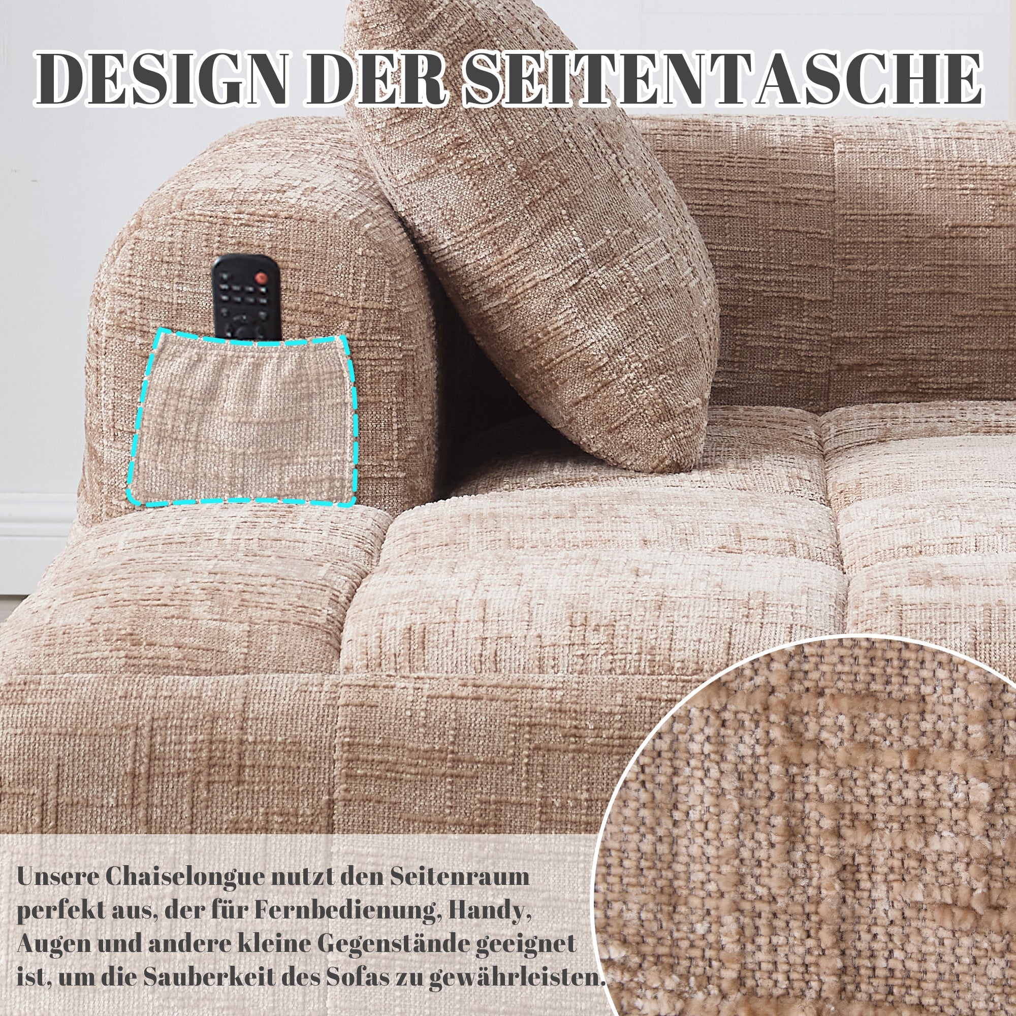 Chaise Longue Sofa, Soft Cushions Side Pockets, Khaki