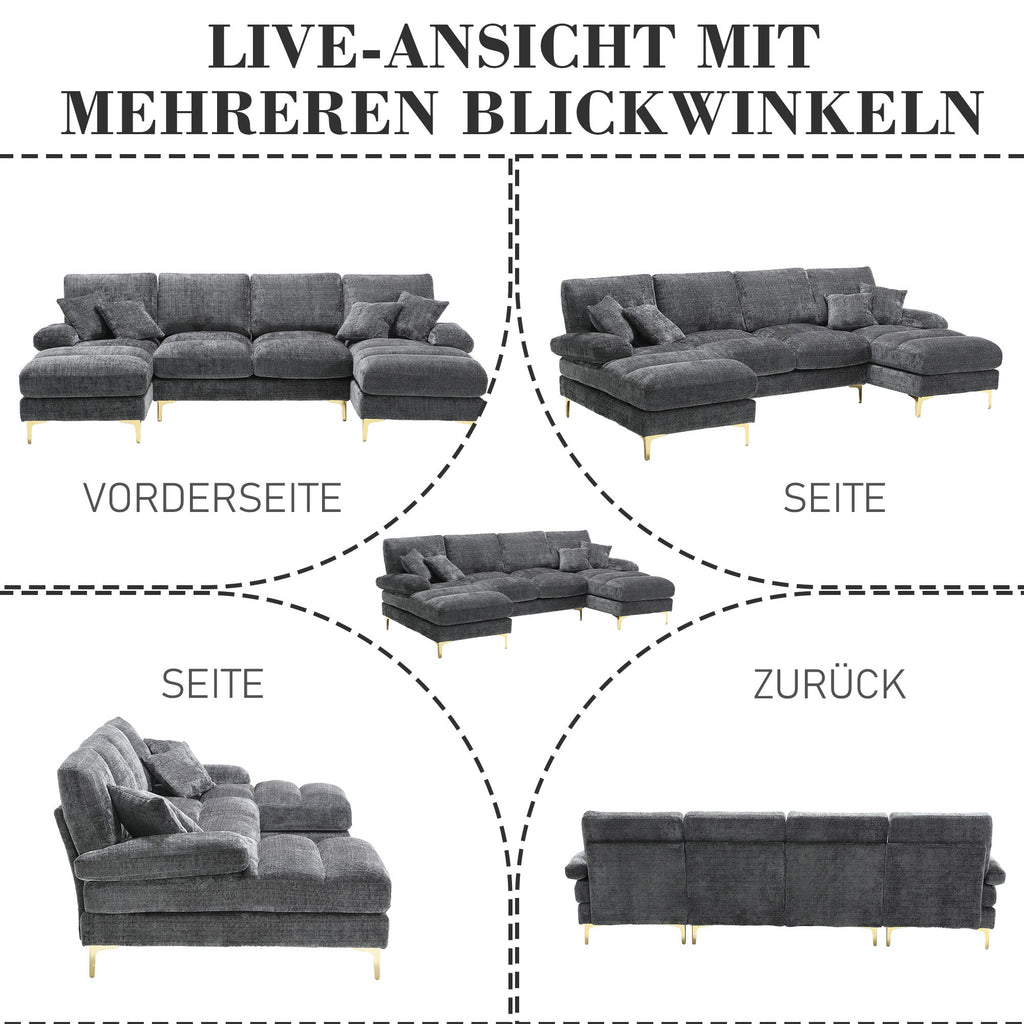 Chenille U-Shape Sectional Sofa, Large with Double Reclining Seats, Modern