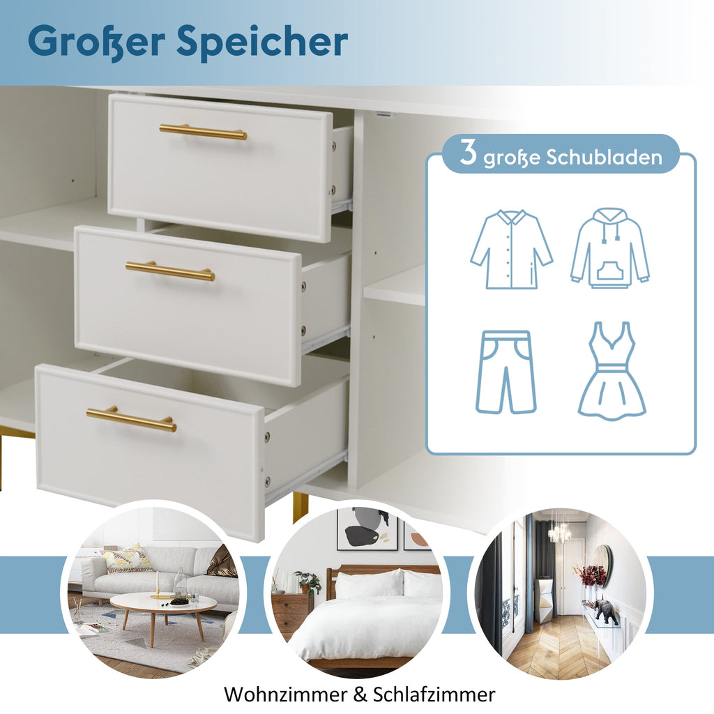 Chest of Drawers, 2 Doors, 3 Drawers, Adjustable Shelf, White