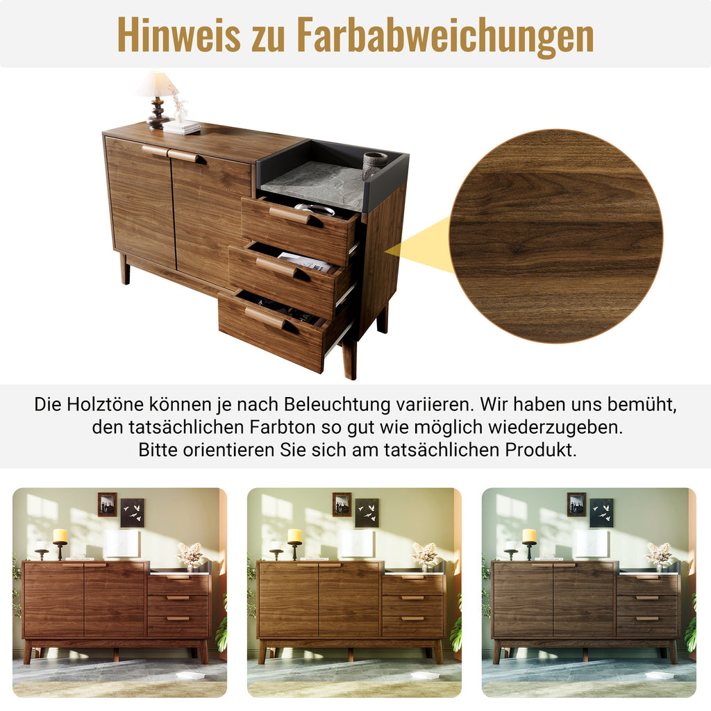 Chest of Drawers, Open Shelf, 3 Drawers & Double-Door Cabinet, Oak with Marble-Effect