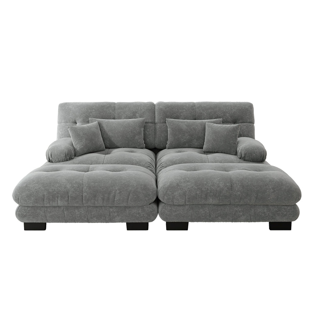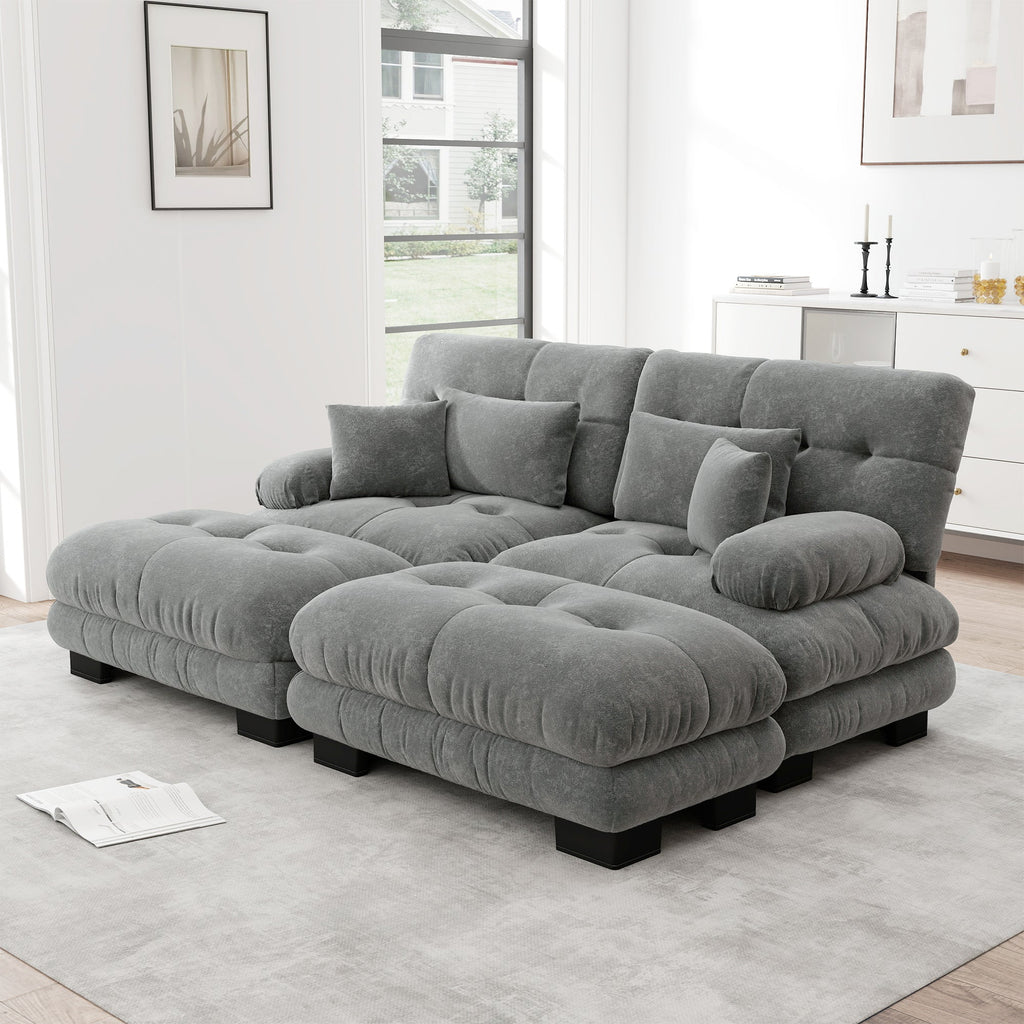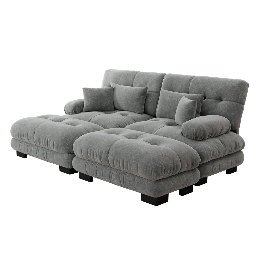 Cloud Corner Sofa, Double with Lumbar & Decorative Pillows, Wide Armrests & 2 Ottomans, Chenille Grey
