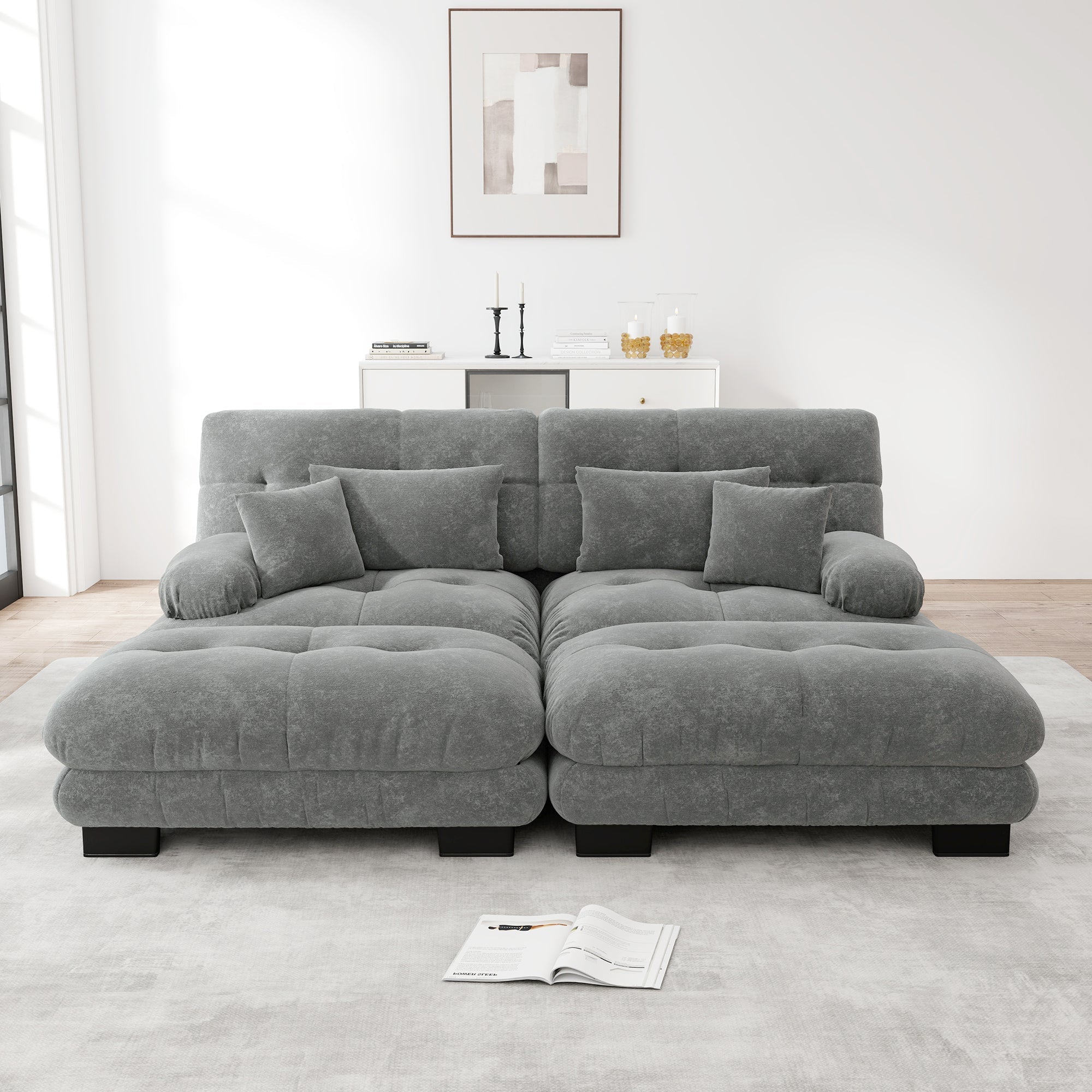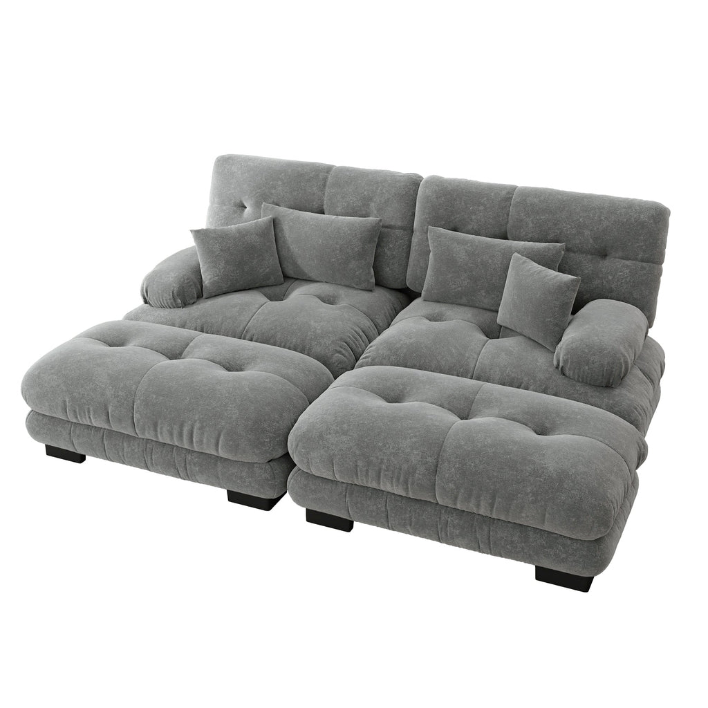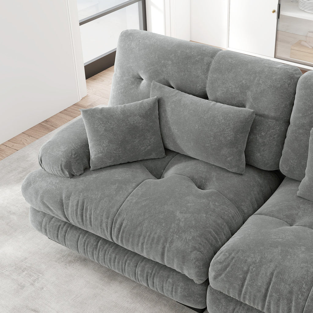 Cloud Corner Sofa, Double with Lumbar & Decorative Pillows, Wide Armrests & 2 Ottomans, Chenille Grey
