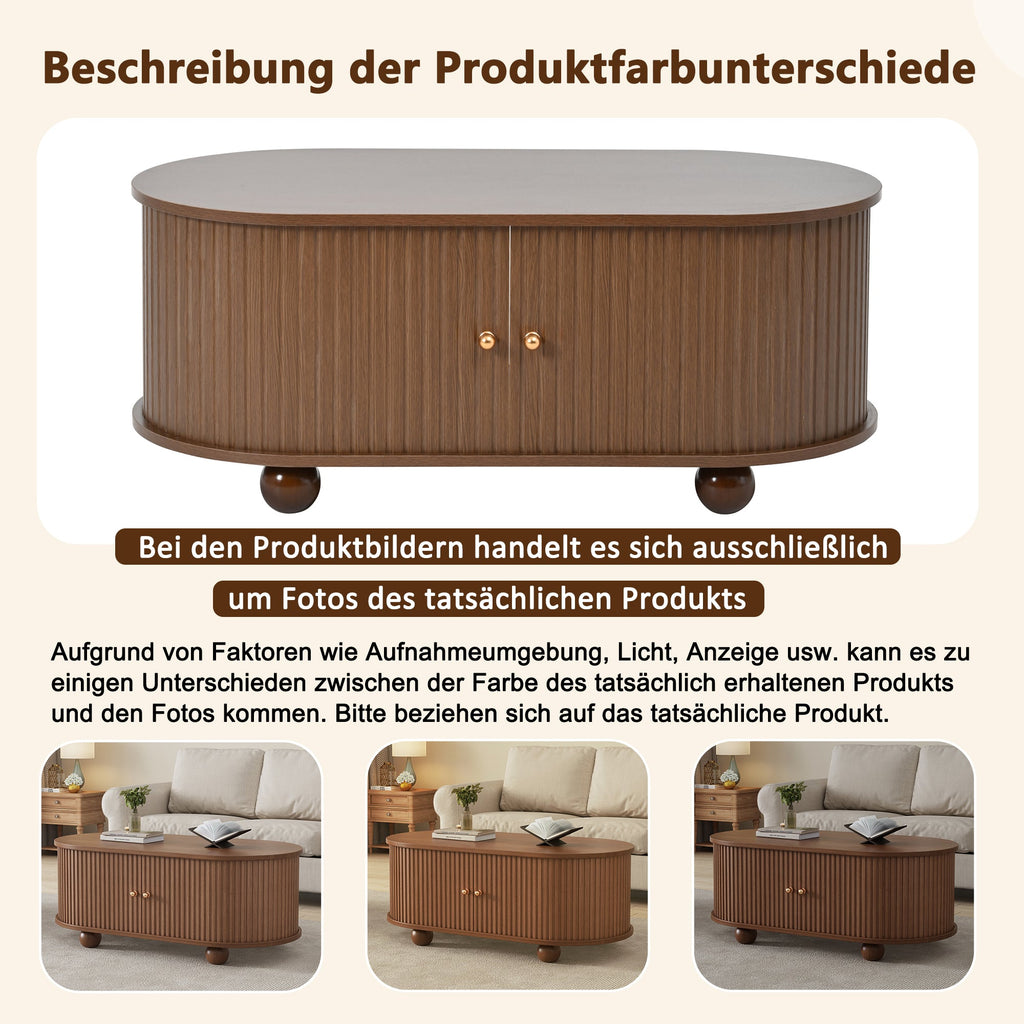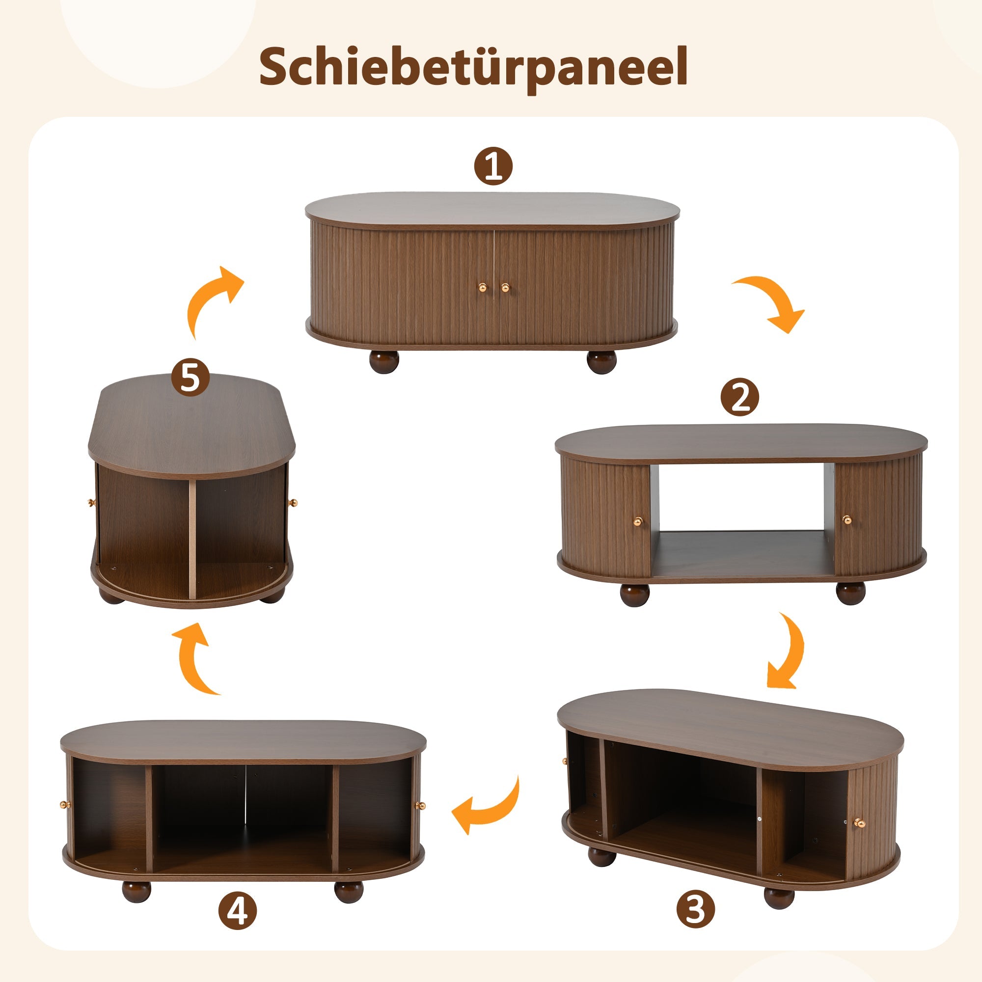 Coffee Table, 100 x 50 x 40 cm, Storage with Sliding Doors, Walnut