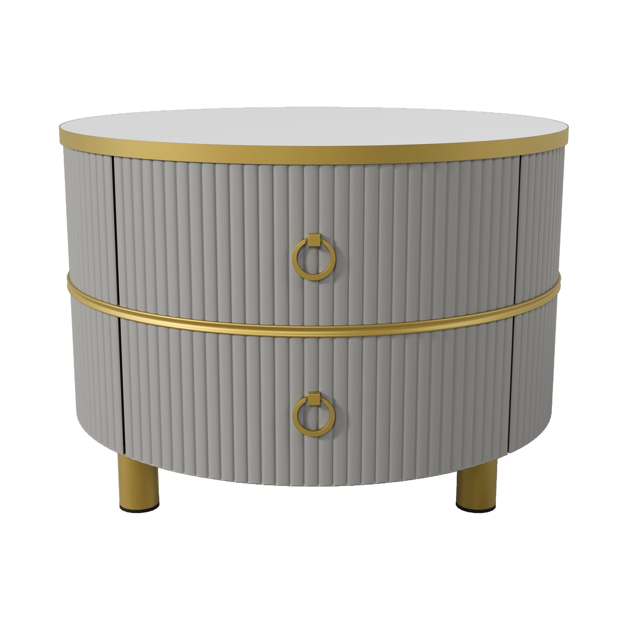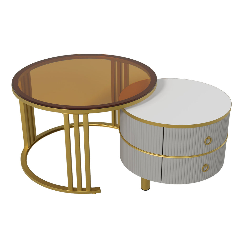 Coffee Table, 2-in-1 Round with 2 Drawers, MDF & Tempered Glass
