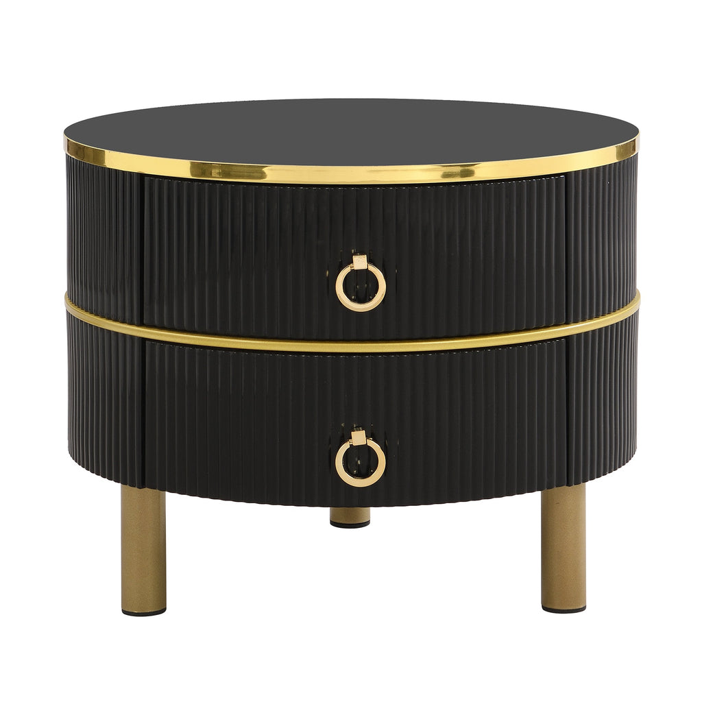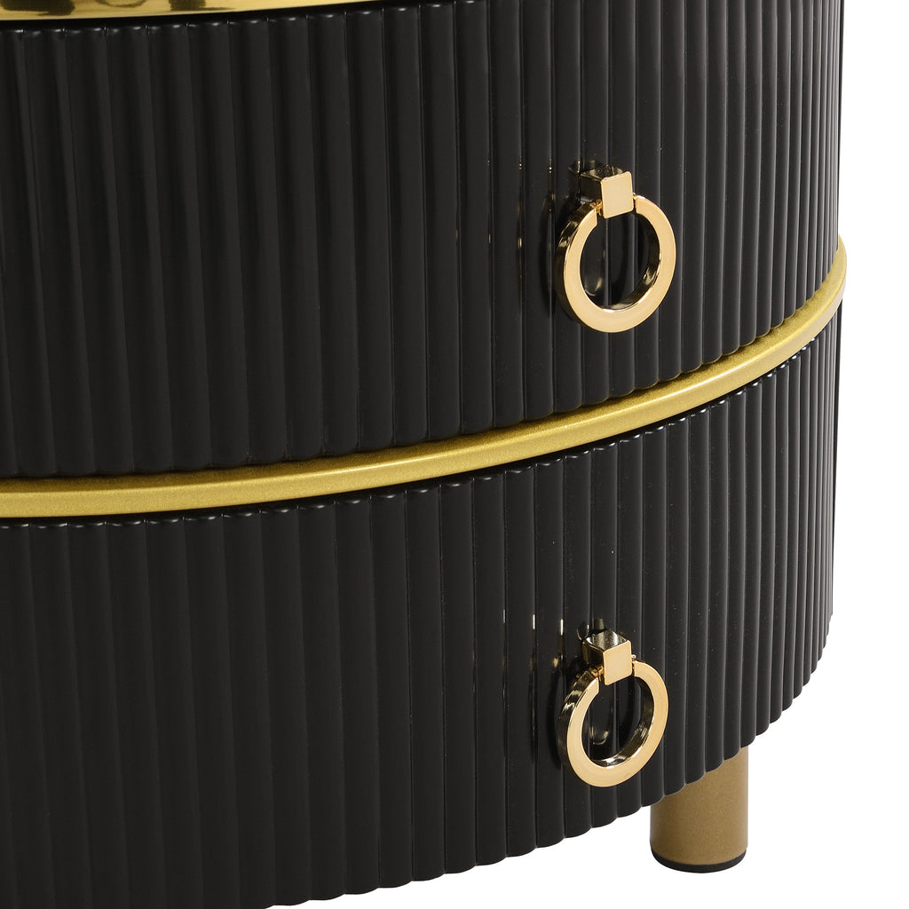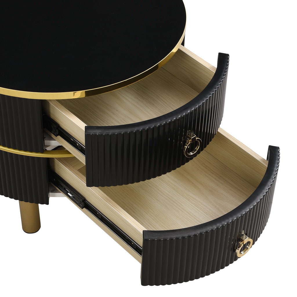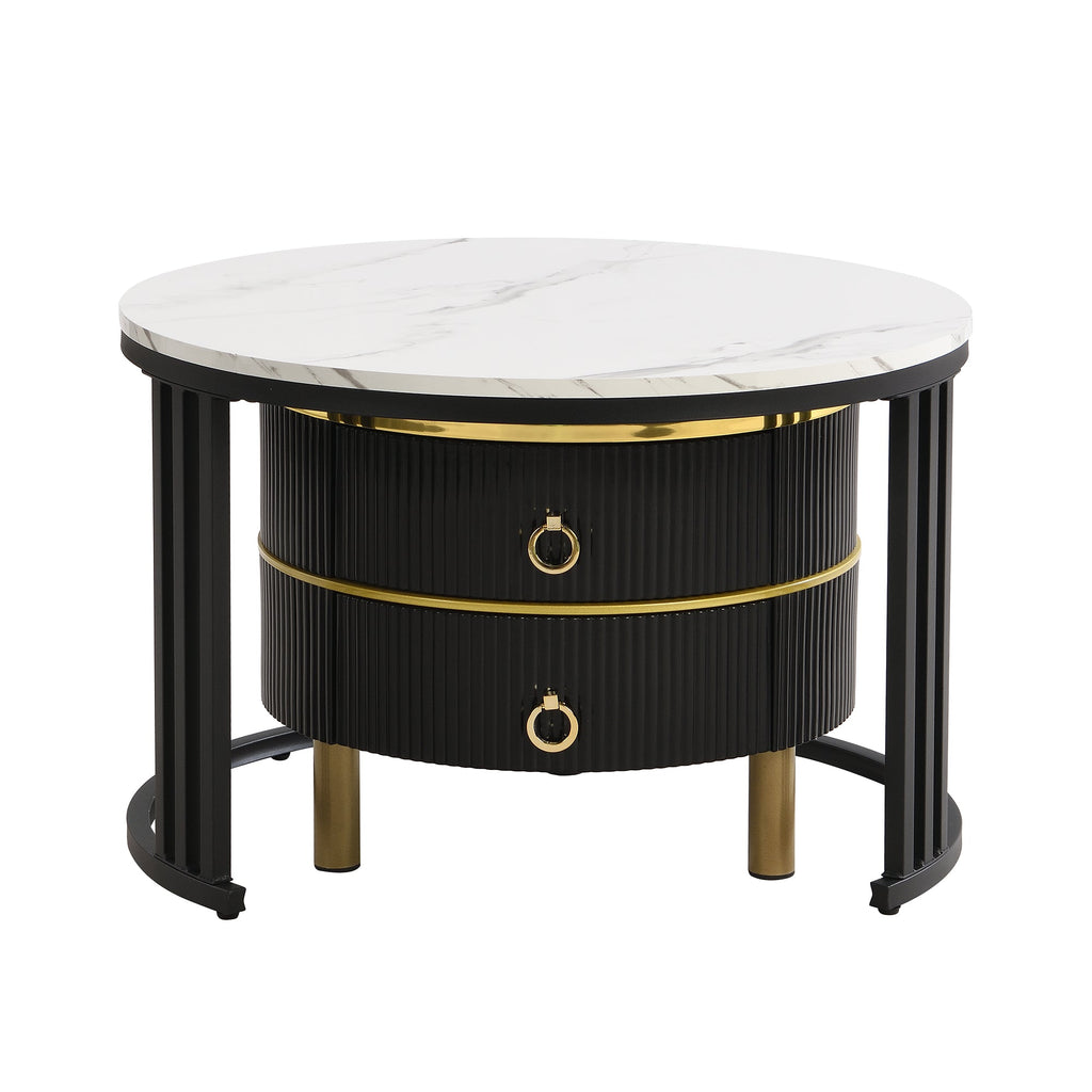 Coffee Table, 2-in-1 Round with Drawers, MDF & White Marble