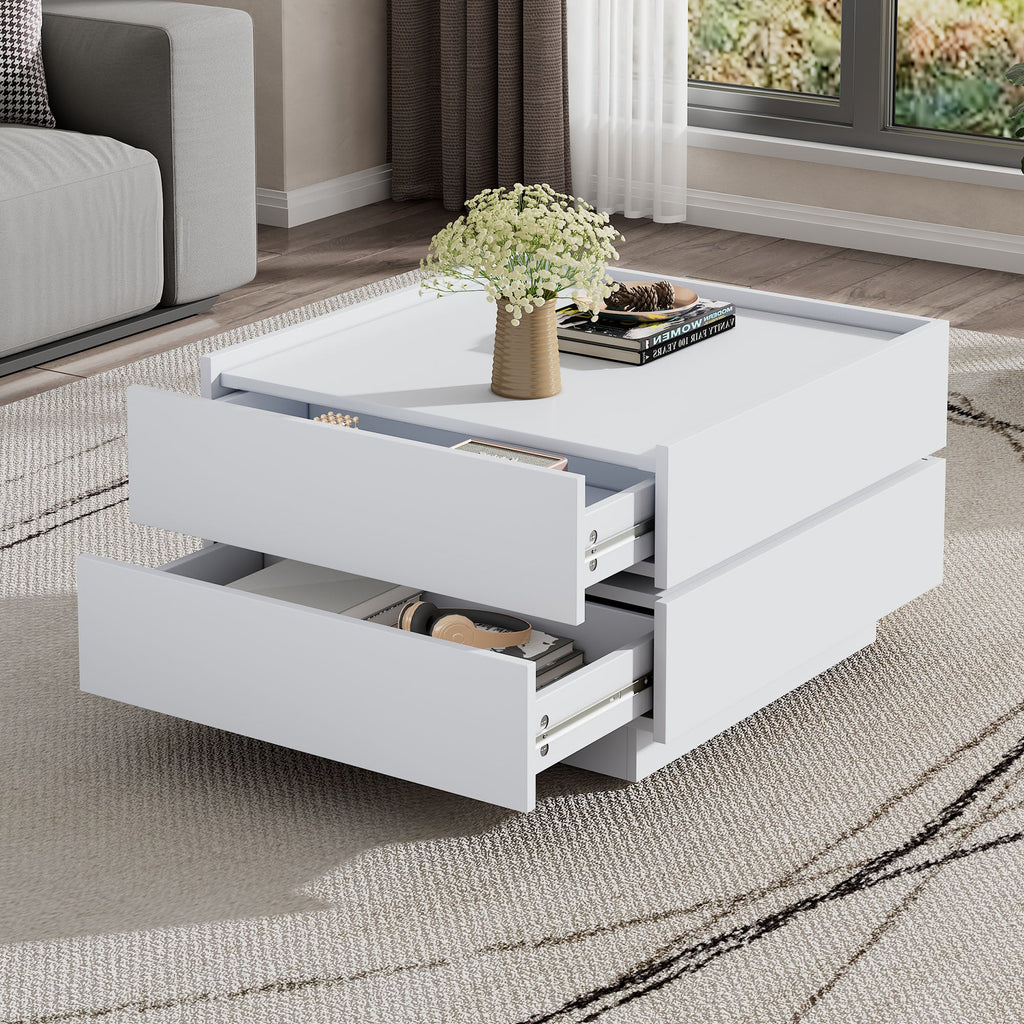 Coffee Table, Functional 360° Rotating with 2 Shelves & Storage, Pure White