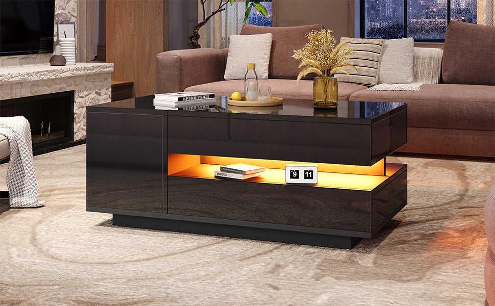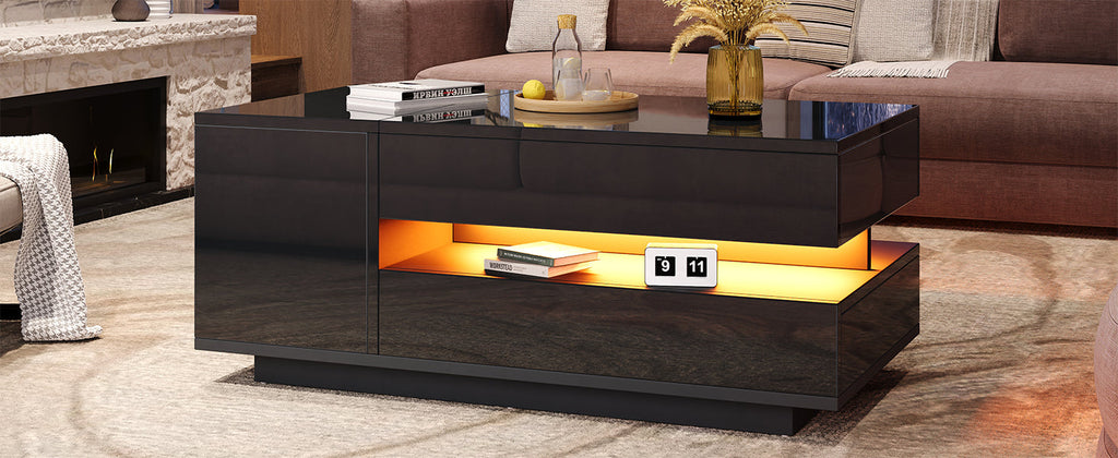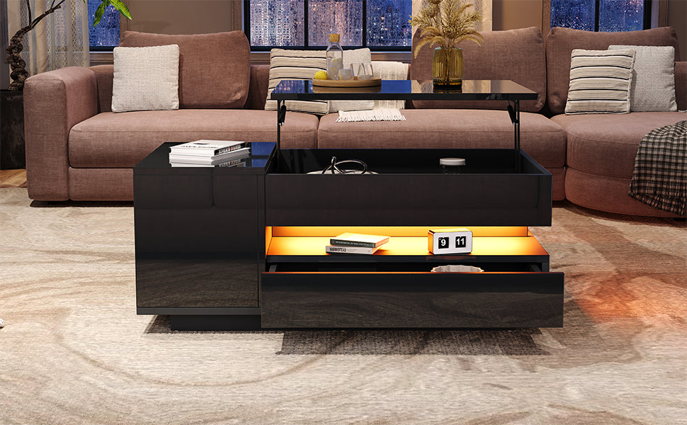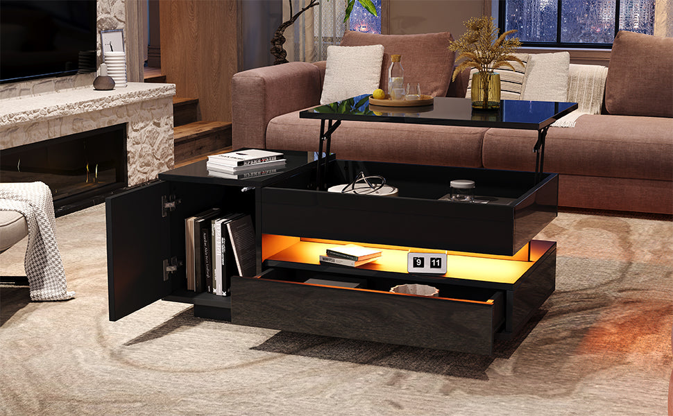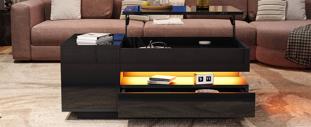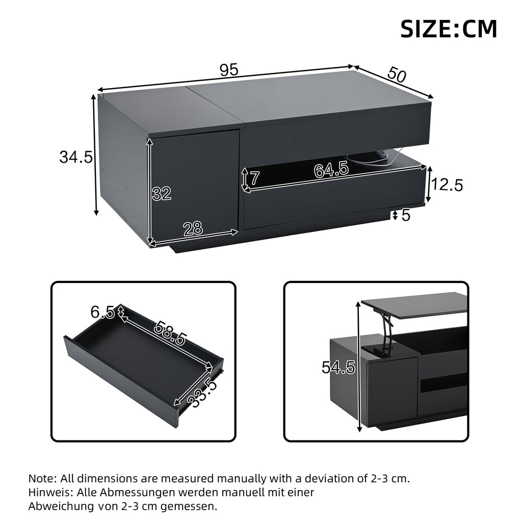 Coffee Table Liftable 95x50x34.5cm, LED, High-Gloss Black