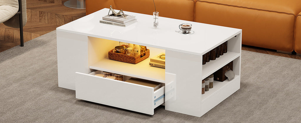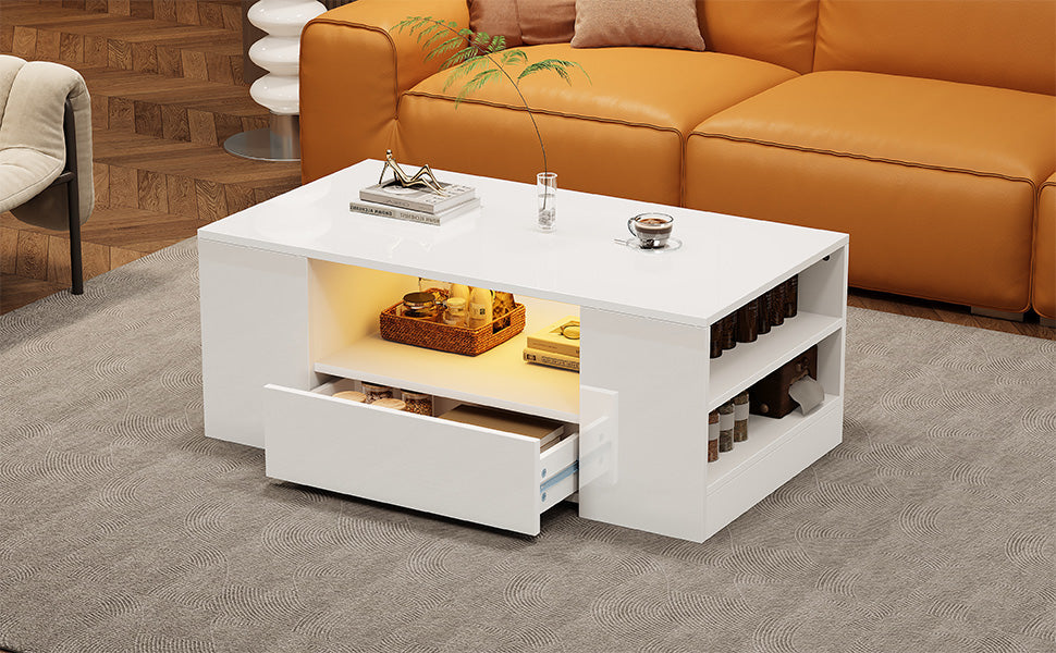Coffee Table, Modern High Gloss with 2 Drawers, 2 Shelves, 95 x 53 x 37cm, High Gloss