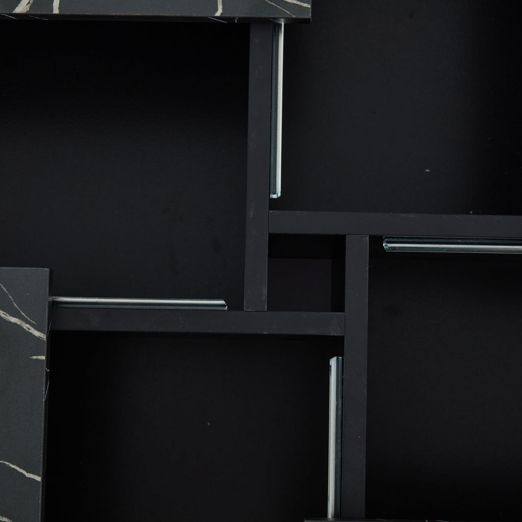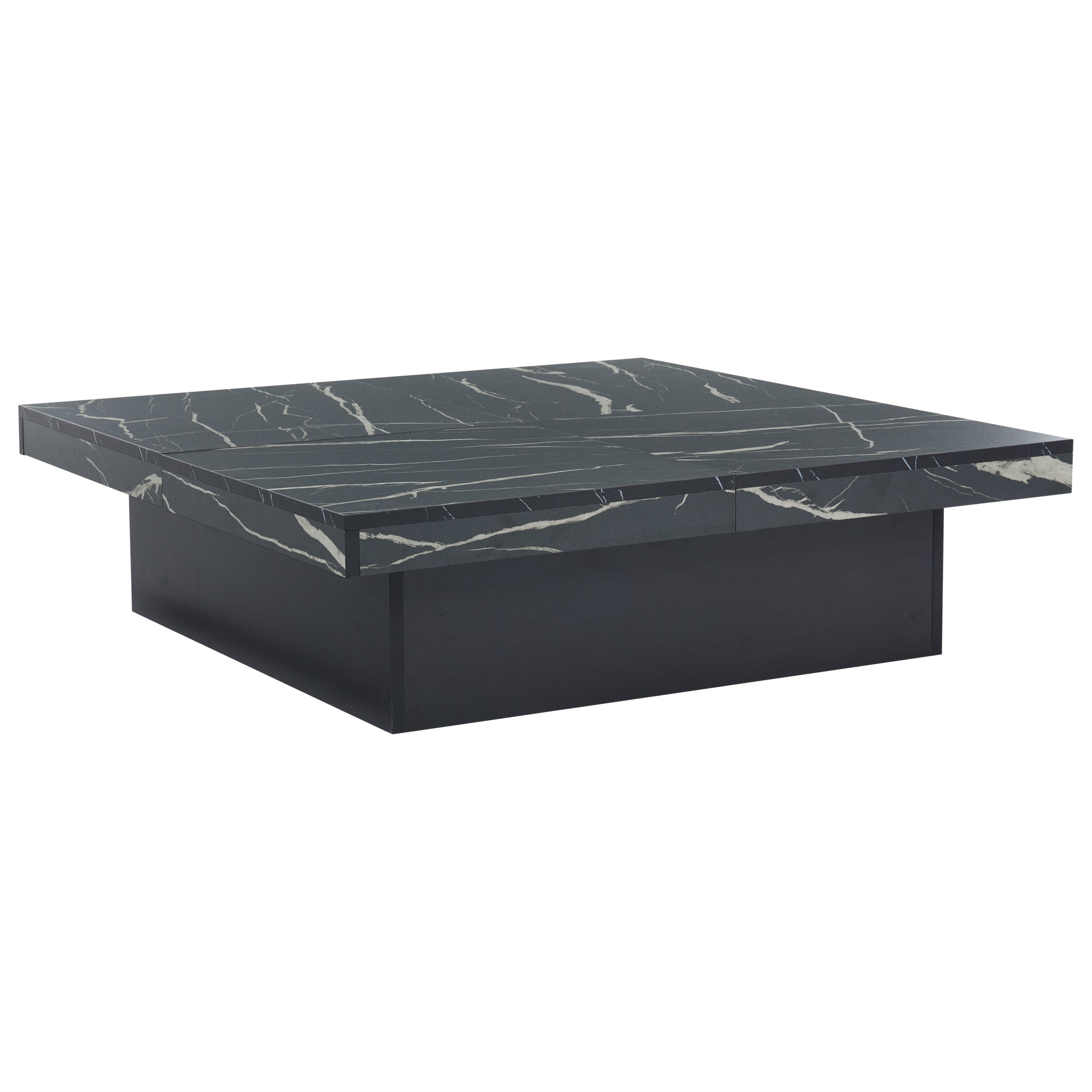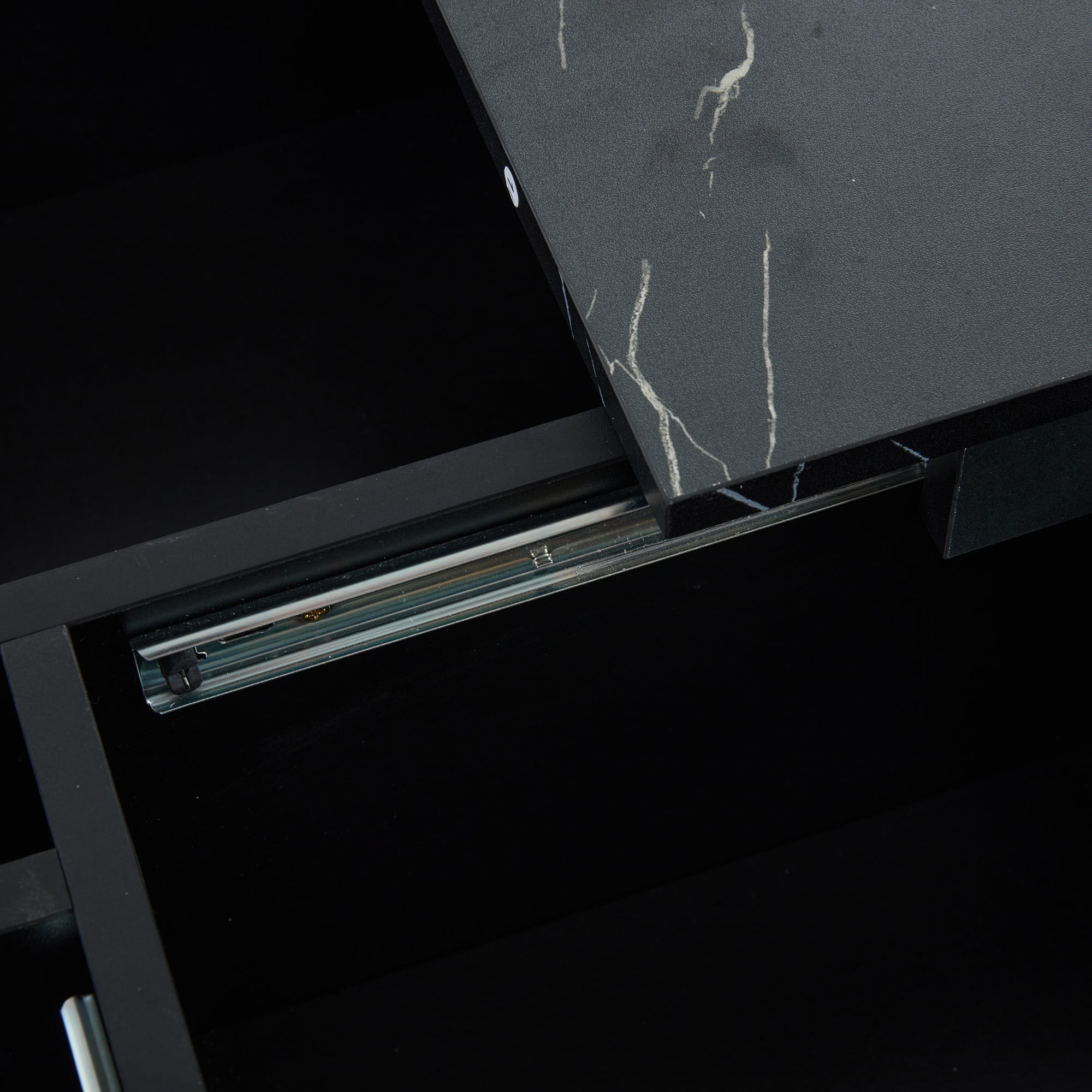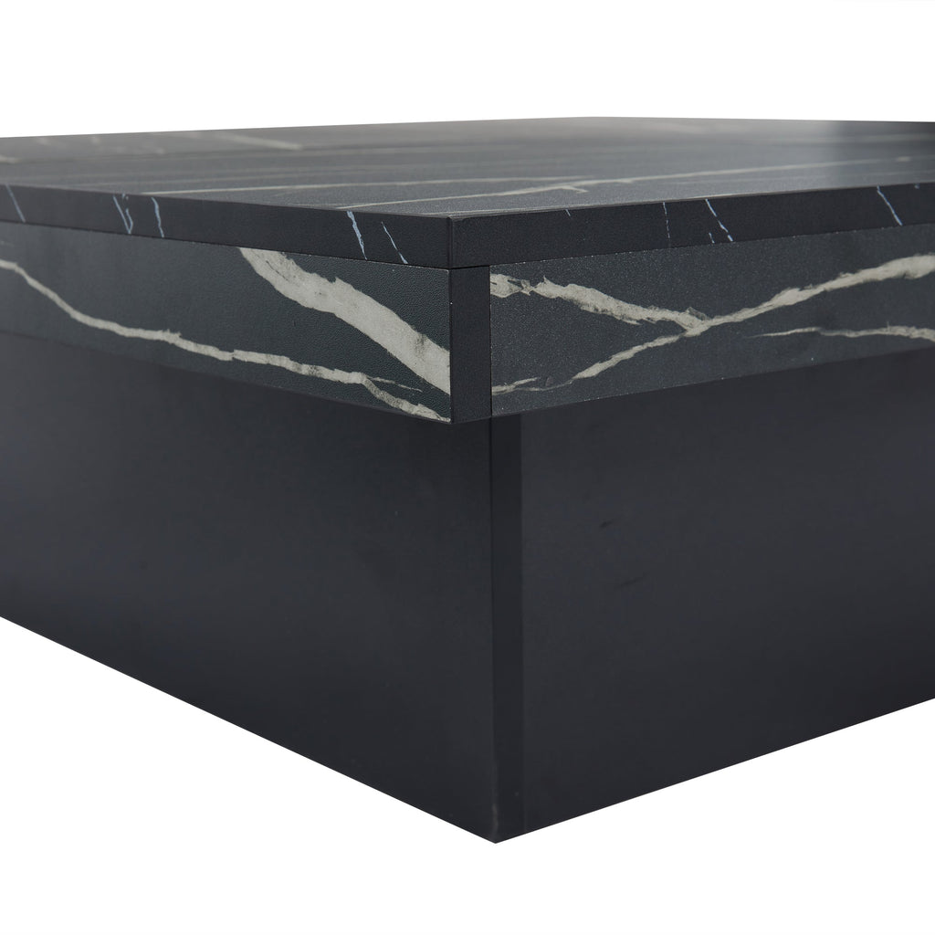 Coffee Table, Square 90x90x25cm with Four Drawers, Sliding Tabletop, Black Marble Look