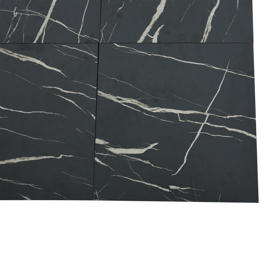 This stylish square coffee table in black, measuring 90 x 90 x 25 cm, combines modern design with high functionality. The elegant marble-effect tabletop adds a touch of luxury and style to your living room. The sliding tabletops allow easy access to the four integrated drawers for neatly storing your personal belongings. This table is sturdy and can support a weight of up to 30 kg, making it a practical yet elegant choice for any modern home.