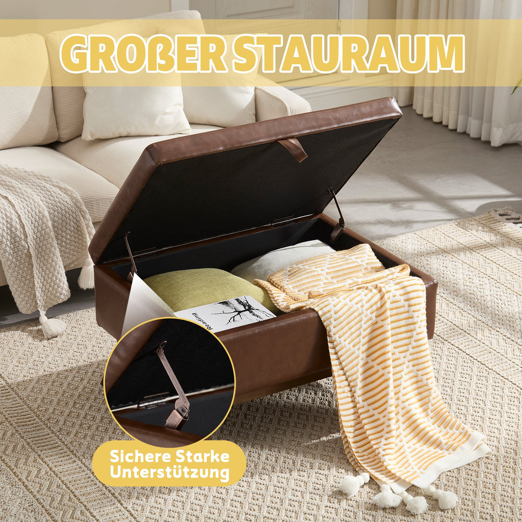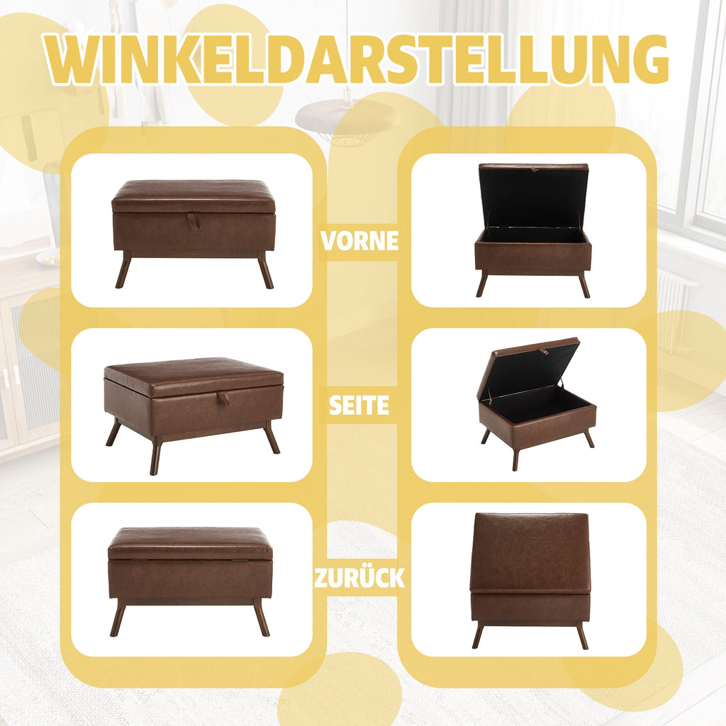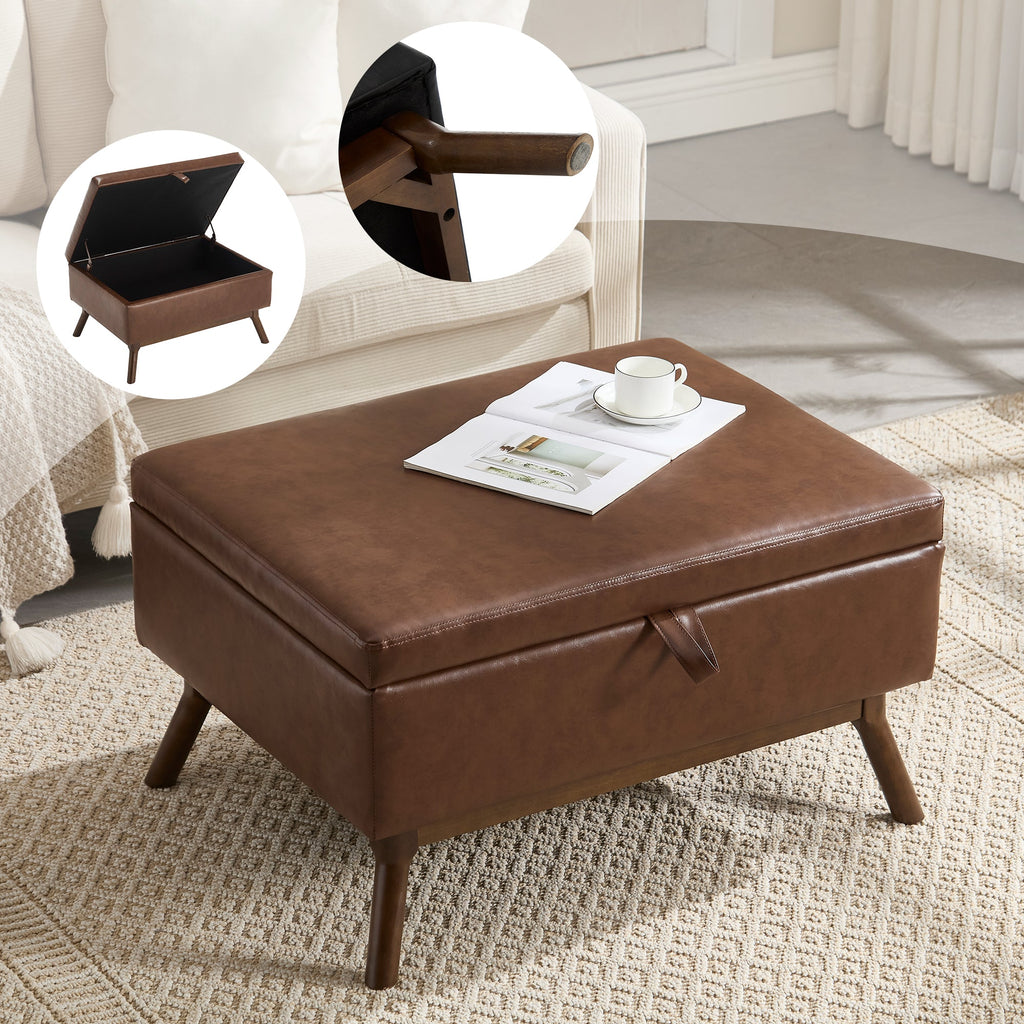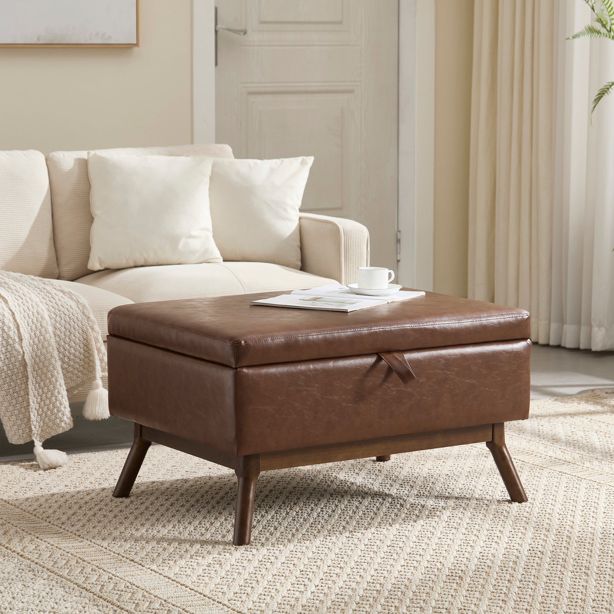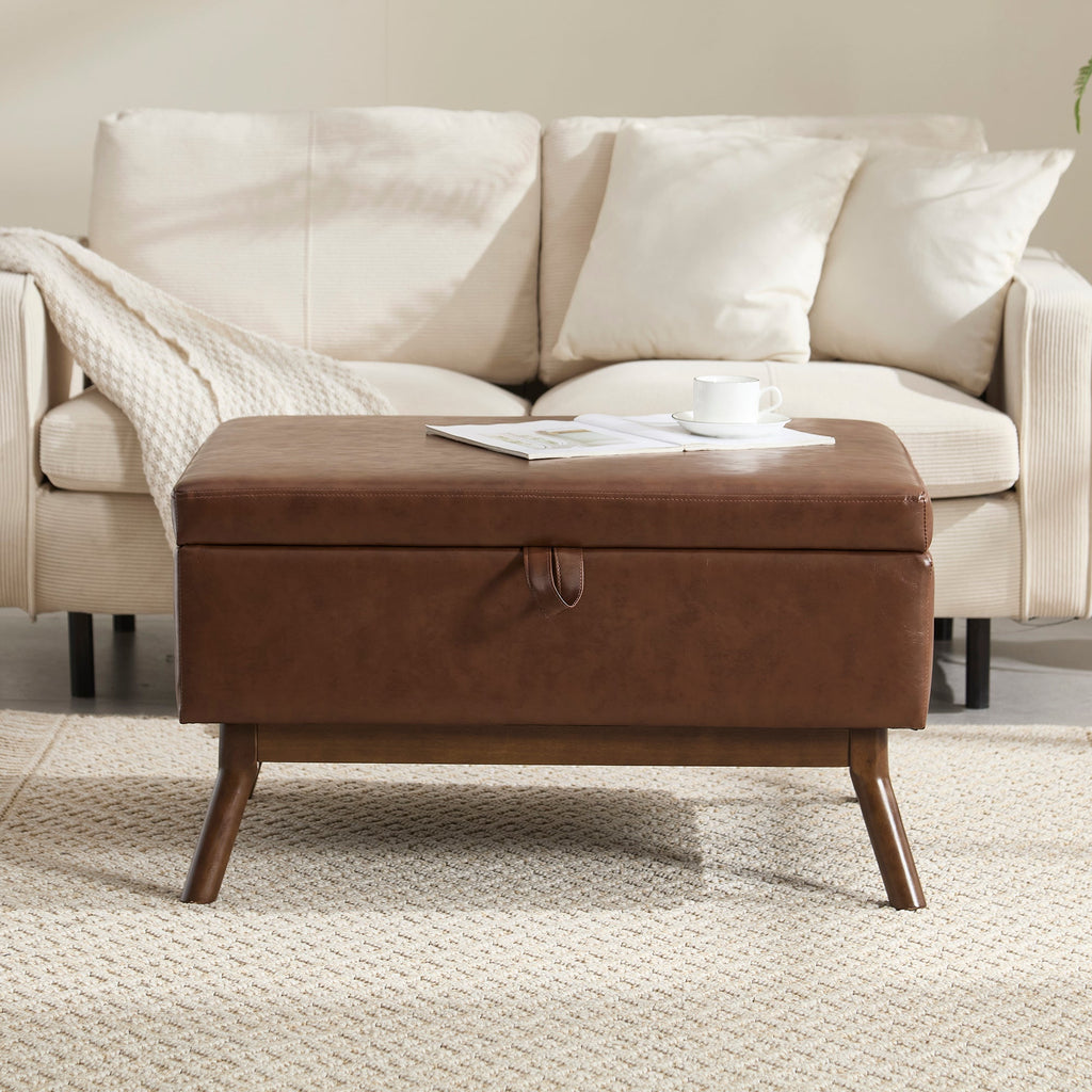 Coffee Table Storage Bench, Mid-Century Modern Square Assembled
