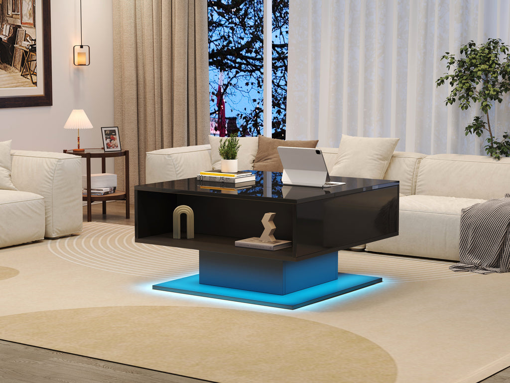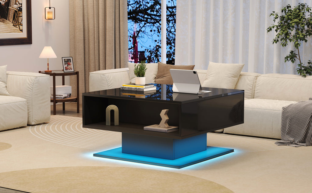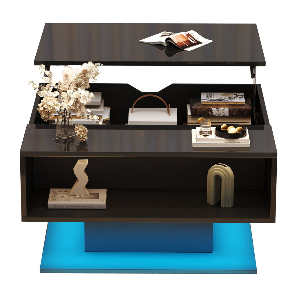Coffee Table with Hydraulic Lift, High-Gloss, Storage, Black