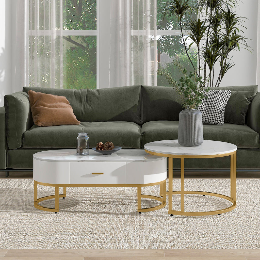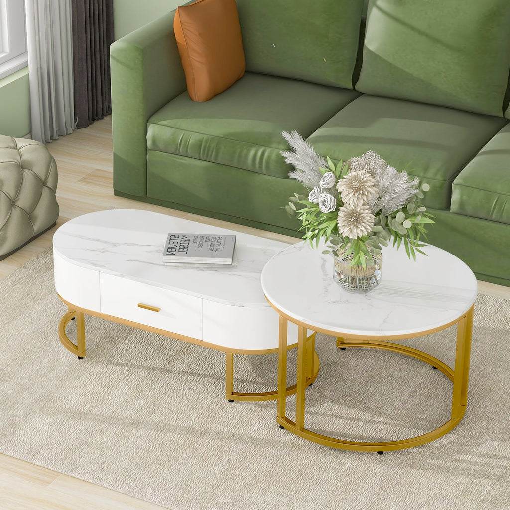Coffee Tables 2-Piece Nesting Table Set, Metal Gold