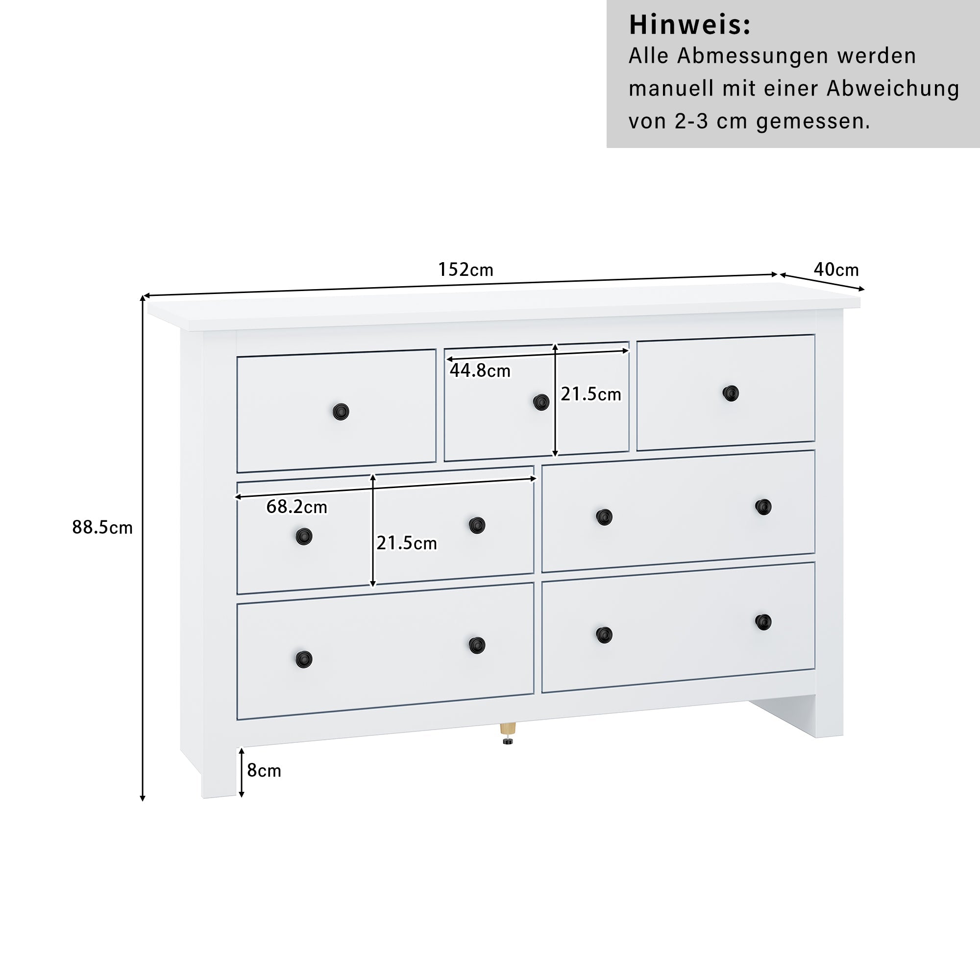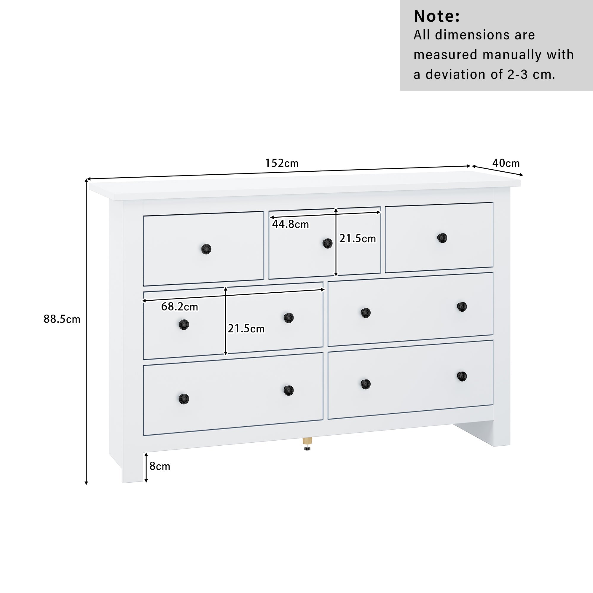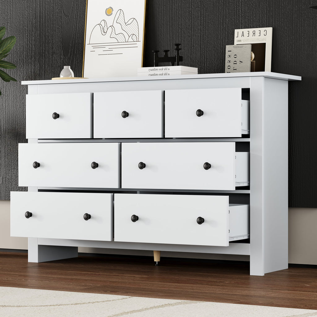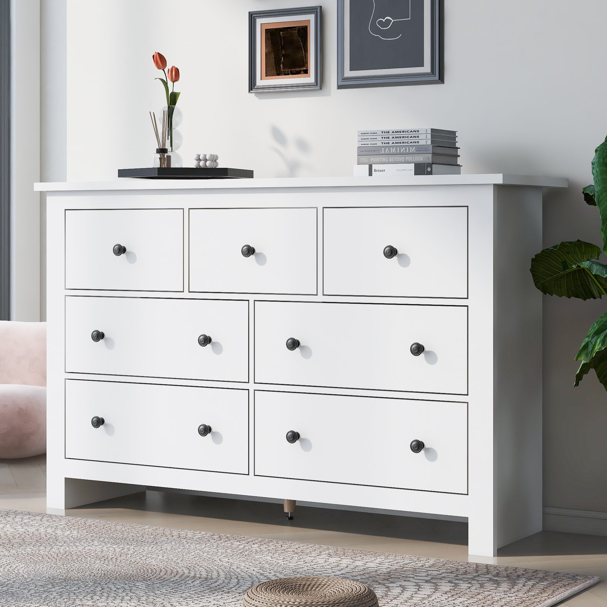 Dining Cabinet, Modern Minimalist 7-Drawer Buffet, White