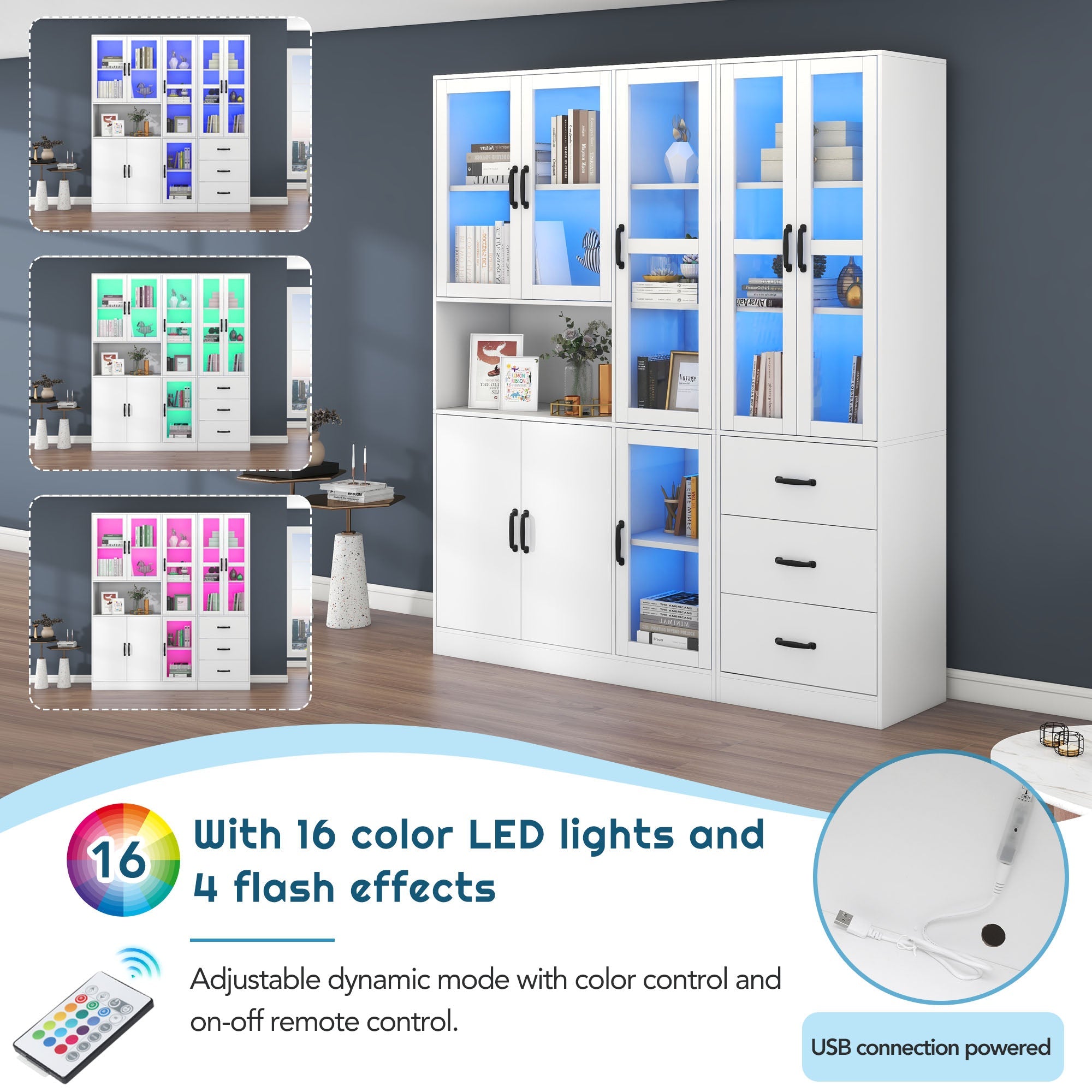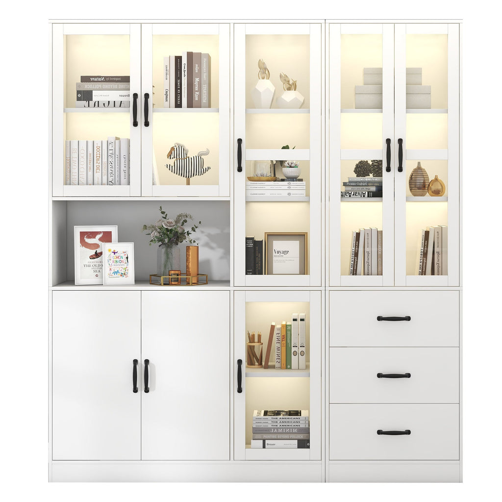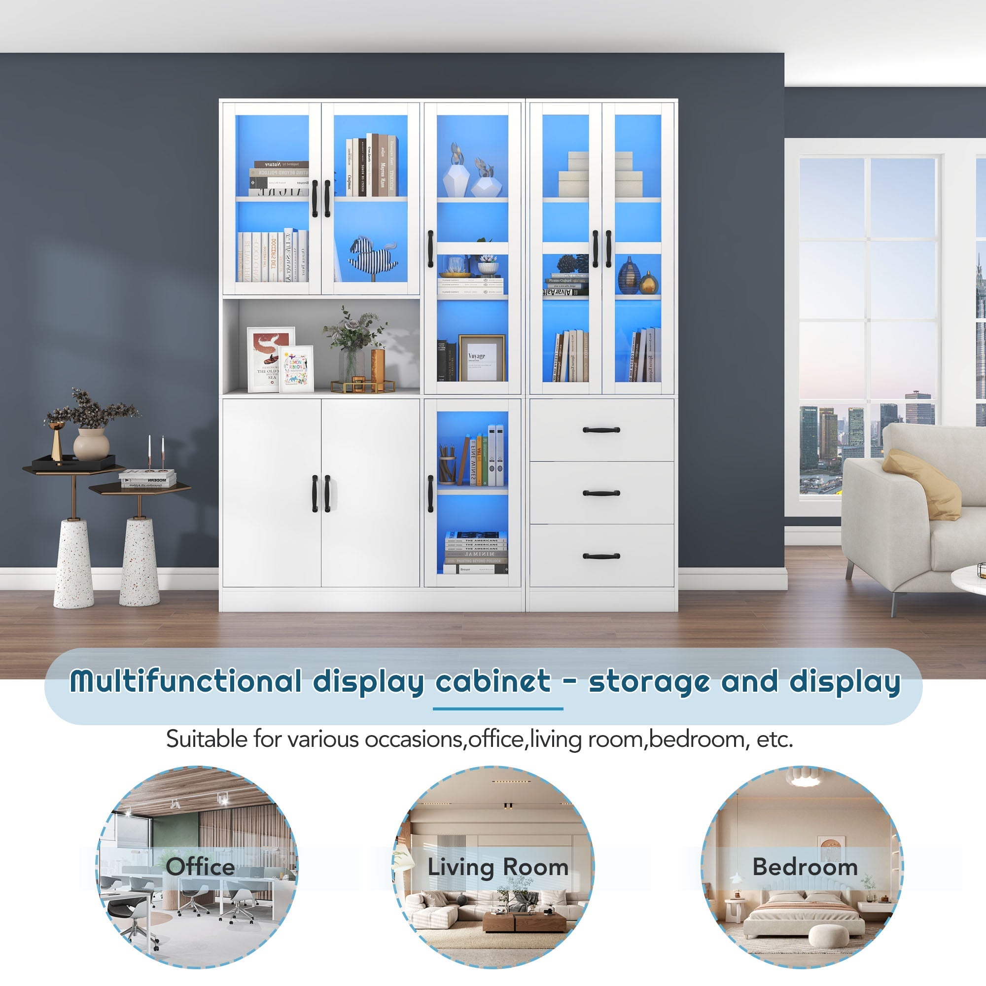 Display Cabinet Set, Modern Combination with LED Lighting, 8 Doors, 3 Drawers, White