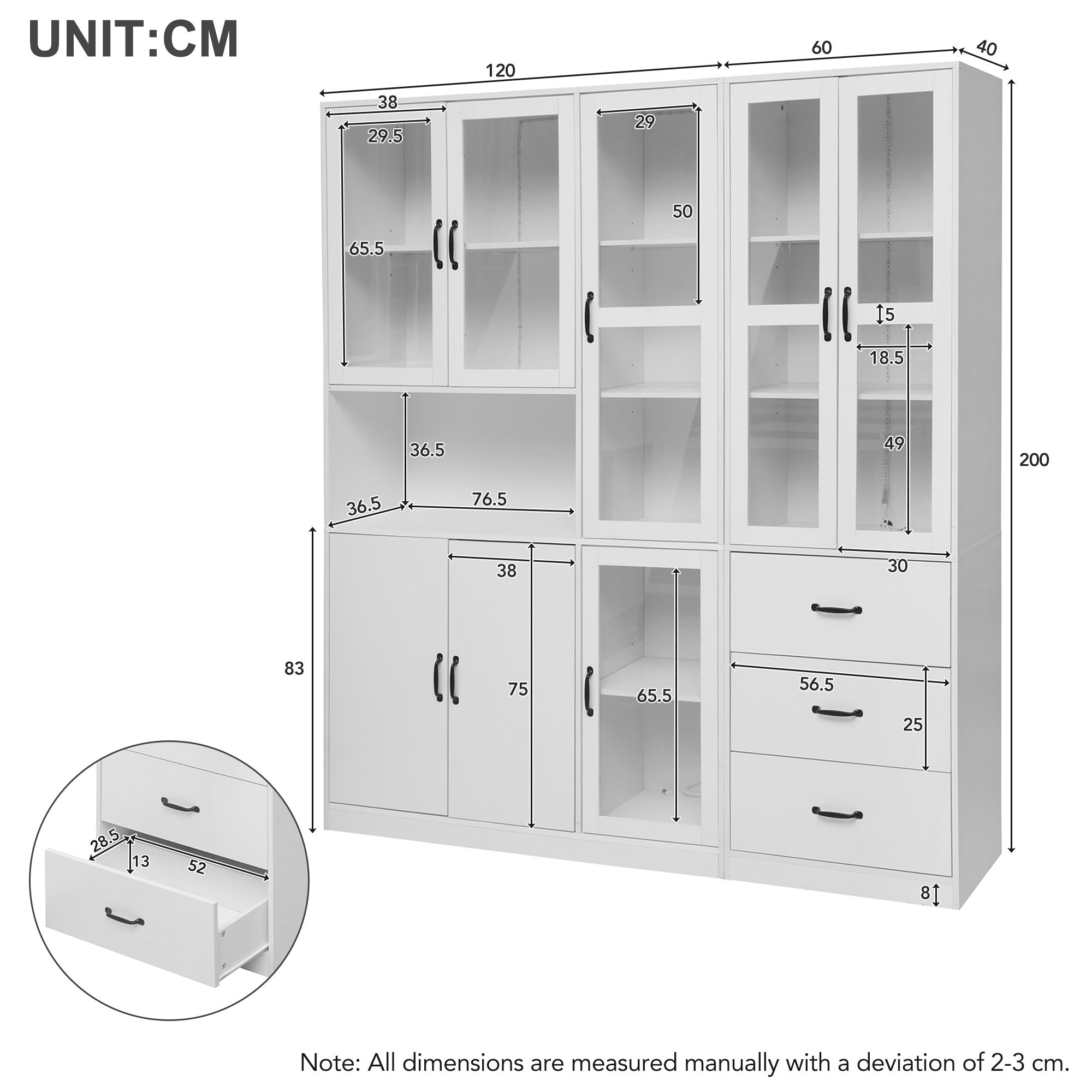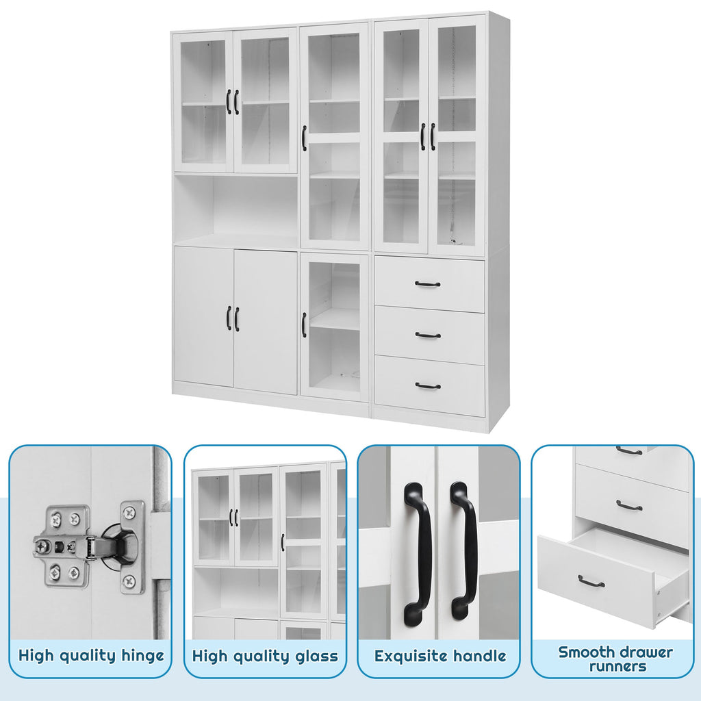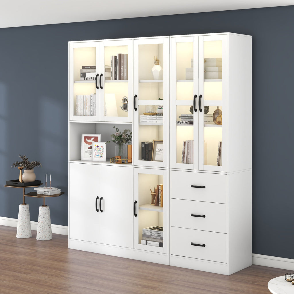 Display Cabinet Set, Modern Combination with LED Lighting, 8 Doors, 3 Drawers, White