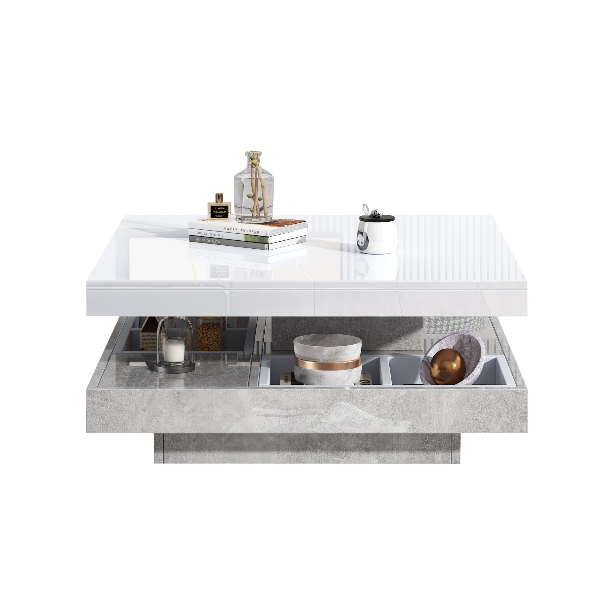 Double Coffee Table, High-Gloss 360° Swivel Top with Storage, White Marble