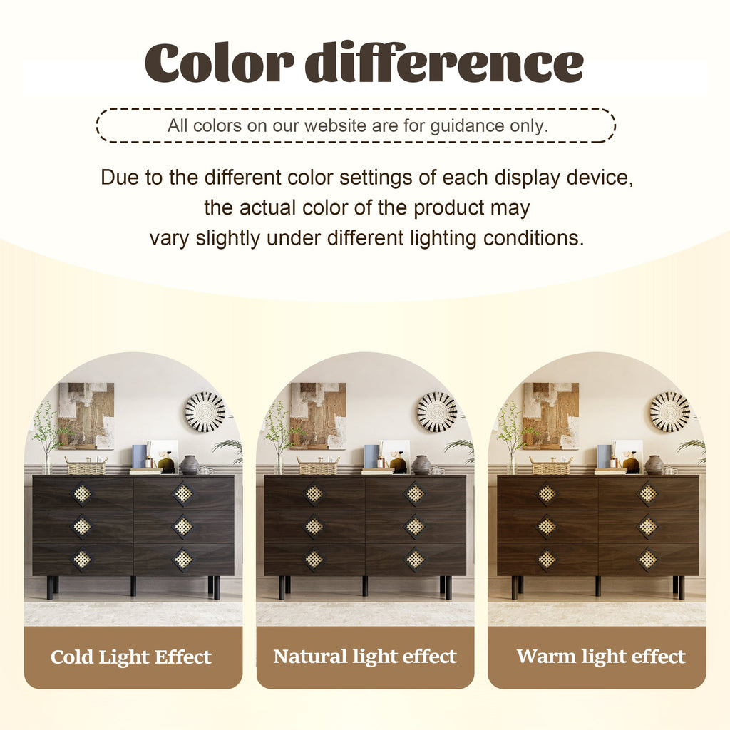 4. Due to the random nature of wood grain, the wood grain of each cabinet is not exactly the same.Selling Points:1. Expanded Storage Space: 6 spacious drawers provide ample space for your accessories, clothes, and more.