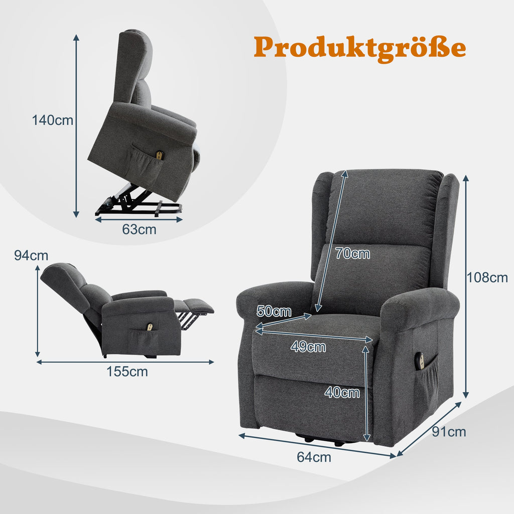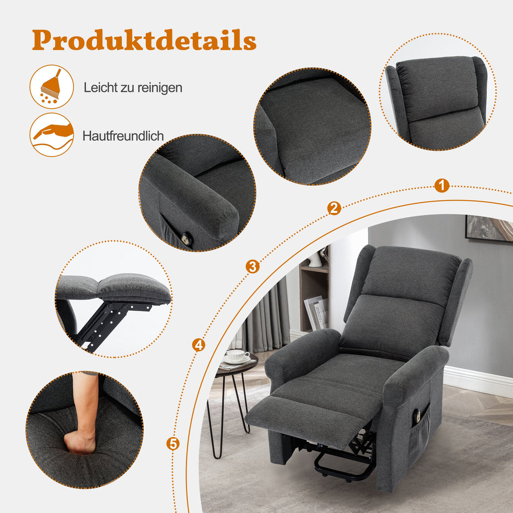 Electric Recliner Chair, Stand-Up & Reclining TV Function, Grey