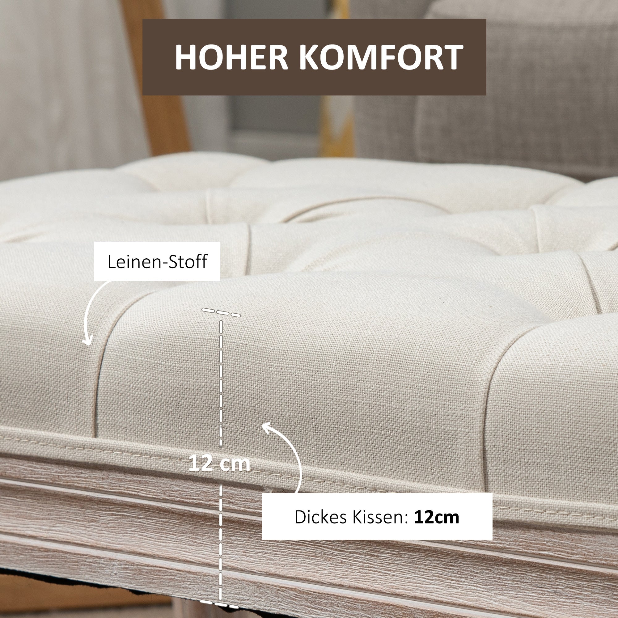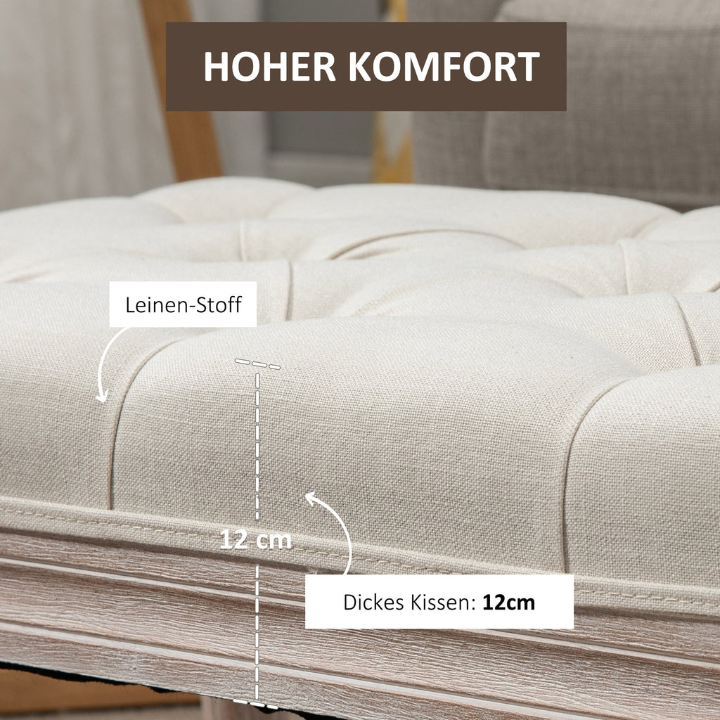 The bench is softly upholstered with a cushioned seat and linen-touch fabric, allowing you to sit comfortably on this tufted fabric bench.