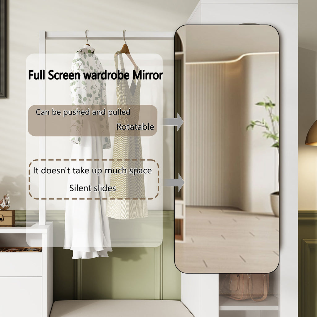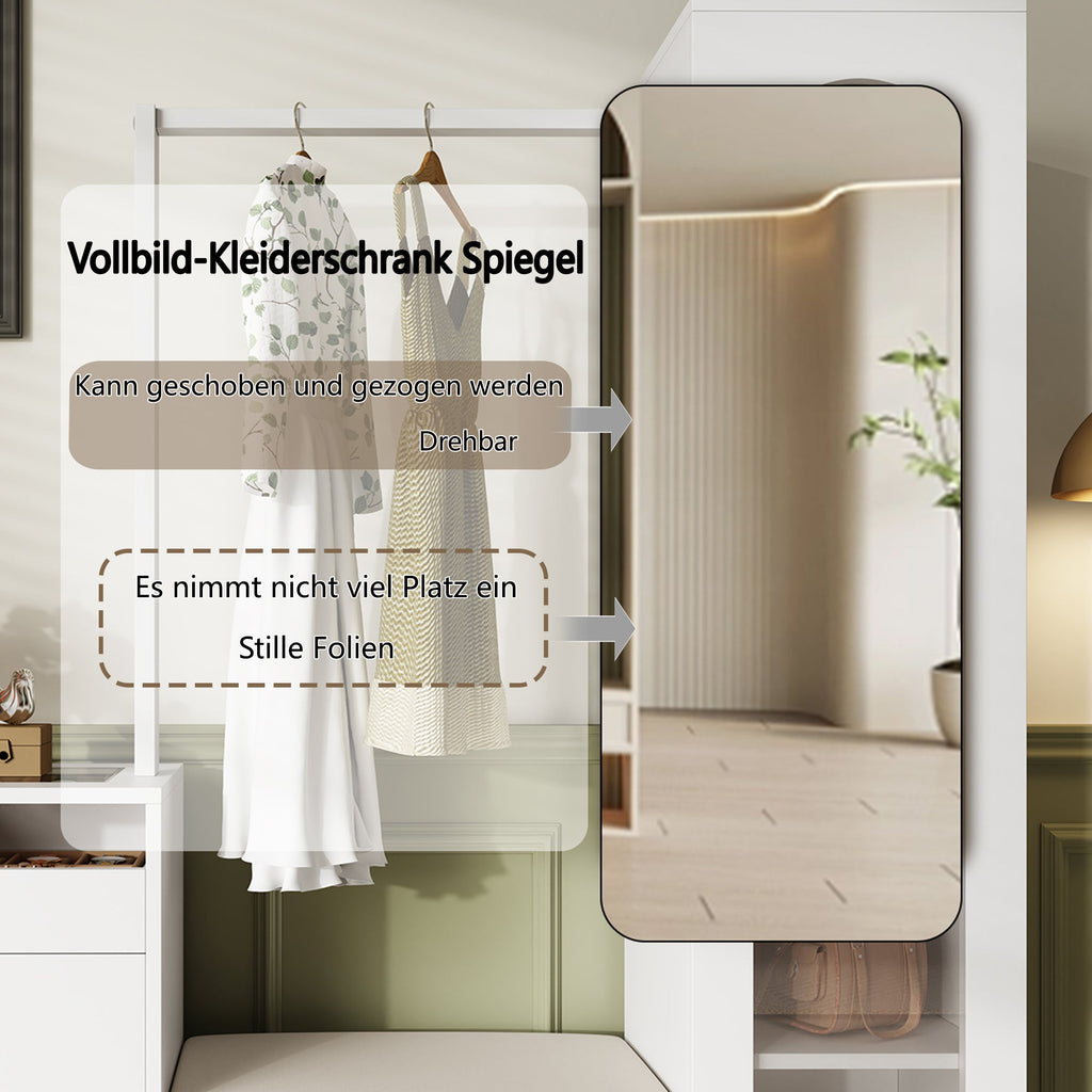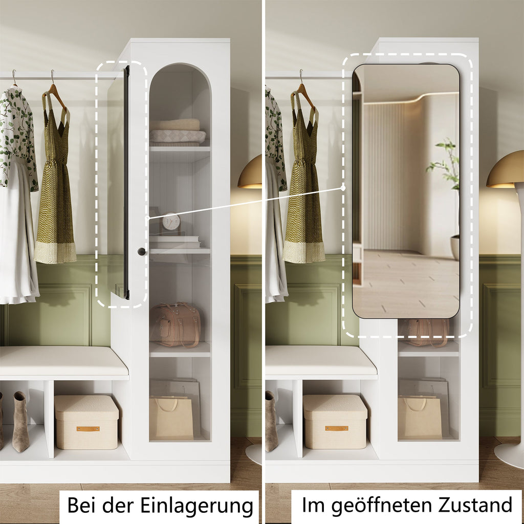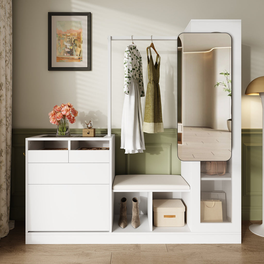 Entrance Combination, 6-in-1 Wardrobe Set, Dressing Table, Shoe Bench, Shoe Cabinet, Display Case with Color-Changing LED Light