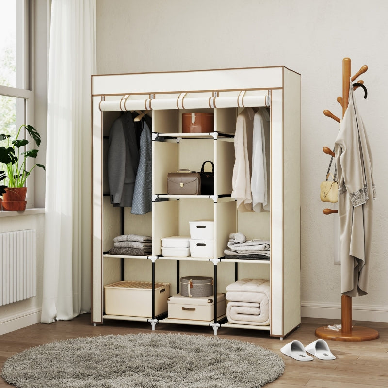 The fabric cover acts as a protective shell, shielding all inner contents from dust and outer dirt. Whether temporary or permanent, this bedroom wardrobe is easy to put up and take down.