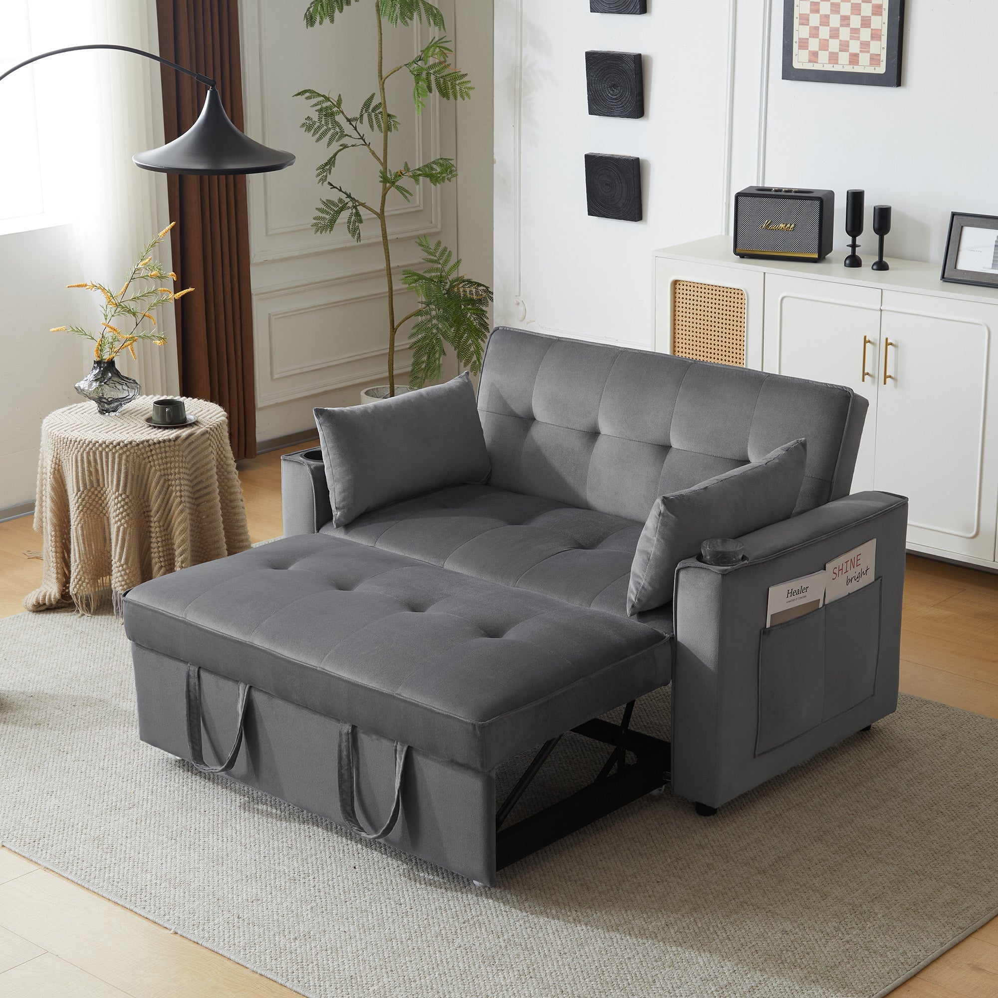 Foldable Sofa Bed, Multifunctional Sleeping Function Cup Holder Cushions