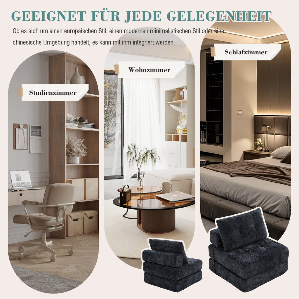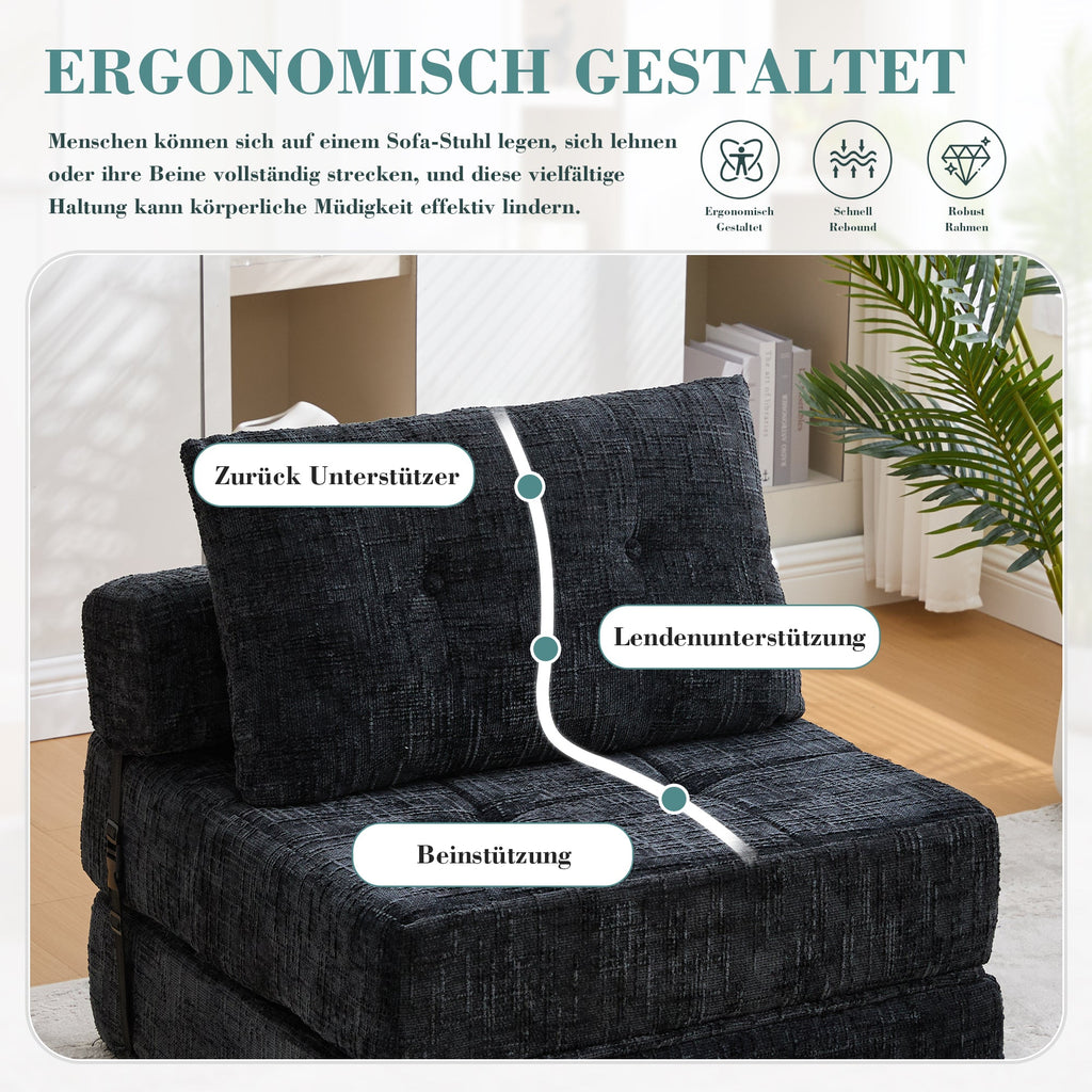 Folding Sofa Bed with Pillows & Backrest, Portable Floor Sofa for Living Room & Bedroom