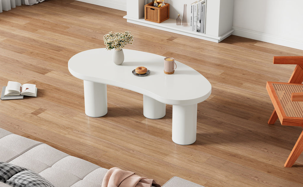 This stylish coffee table, featuring an irregular half-moon shape, brings modern design and functionality to your home. With a maximum length of 107 cm and a width of 57 cm, the table offers ample space for your everyday items without appearing bulky. The tabletop is made of high-quality MDF, carefully varnished to create a smooth, flawless surface. The varnish gives the table an elegant look and a pleasant feel—no rough spots or marks are left when touching the table.