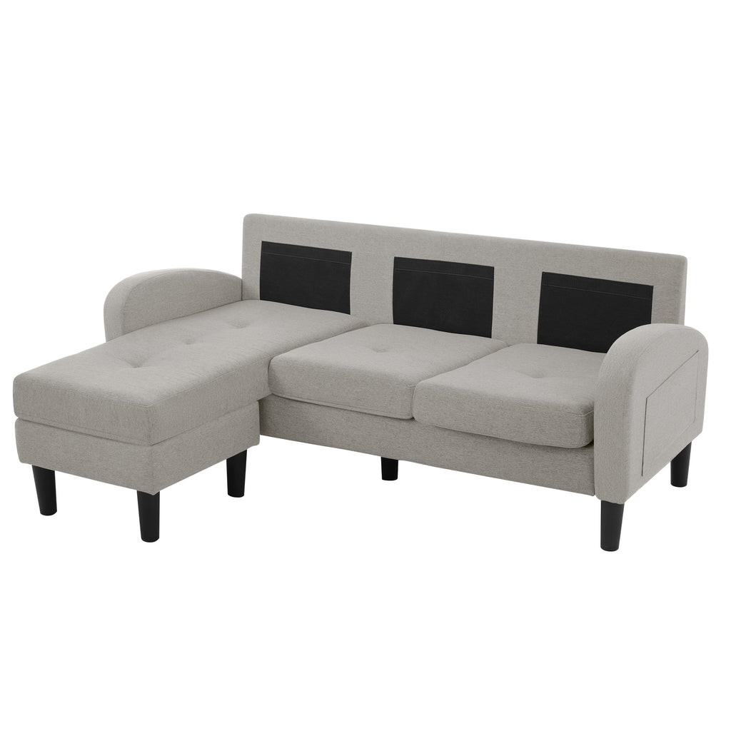 L-shaped Corner Sofa, 3-Seater with Chaise Longue, Modular, Cotton Linen