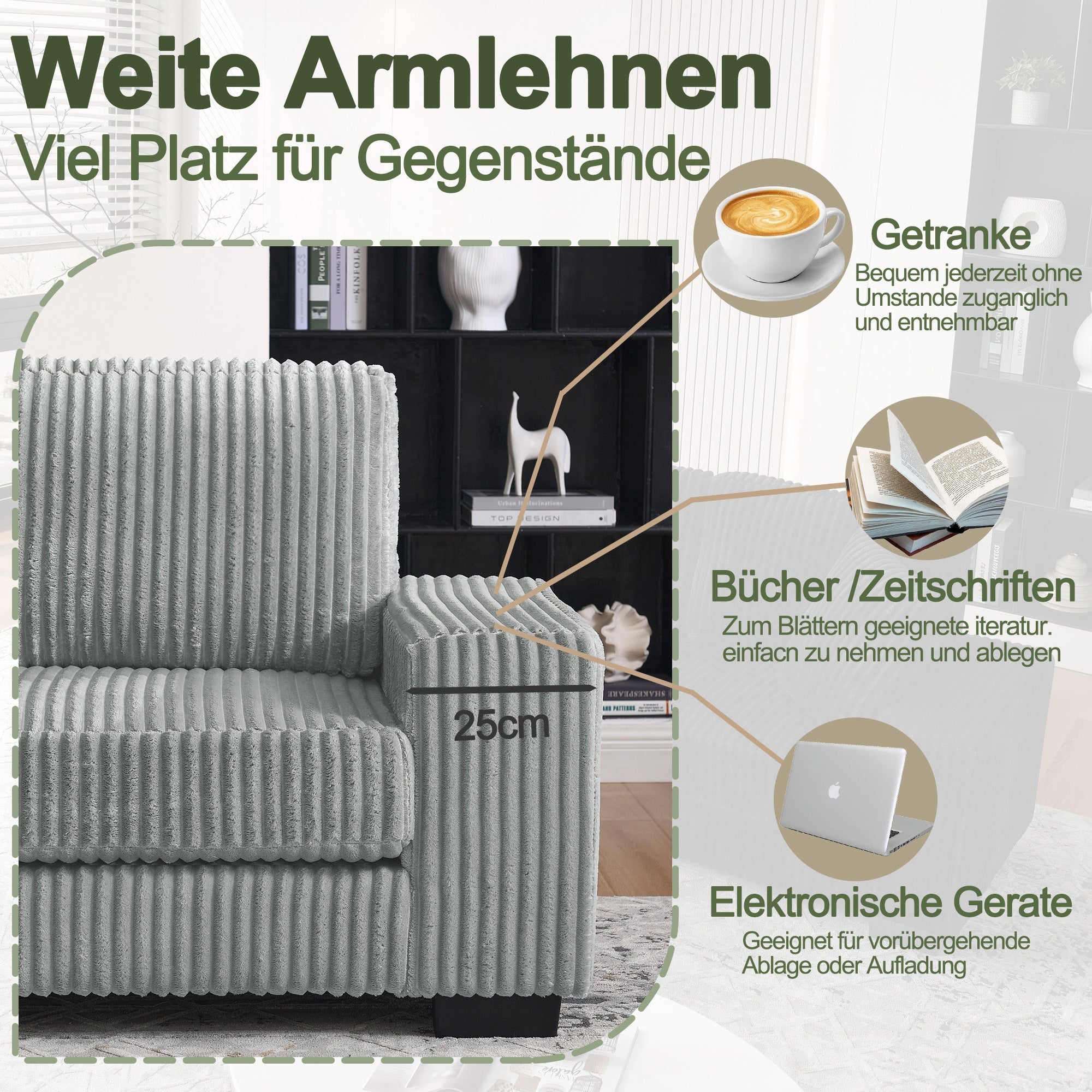 Our L-shaped corner sofa combines premium quality with durability, making it ideal for your everyday life. The densely woven corduroy-like fabric is abrasion-resistant, easy to clean, and skin-friendly. Even after daily use (family movie night, reading after work), it remains soft and retains its shape.