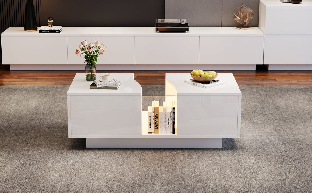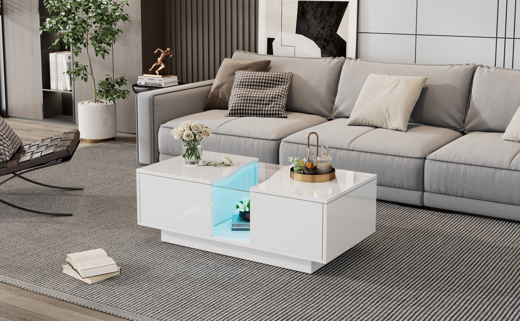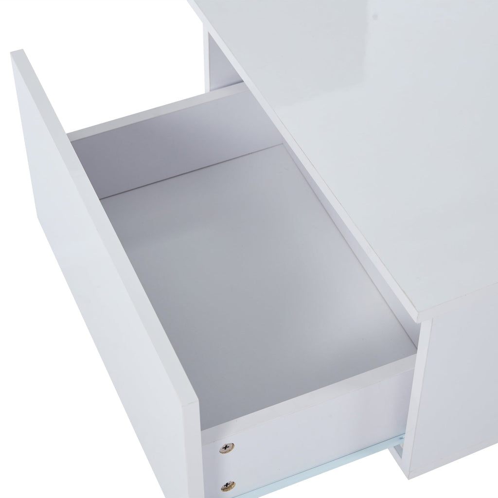 Led Coffee Table 2 Drawer Storage High Gloss 16-Color Lights White